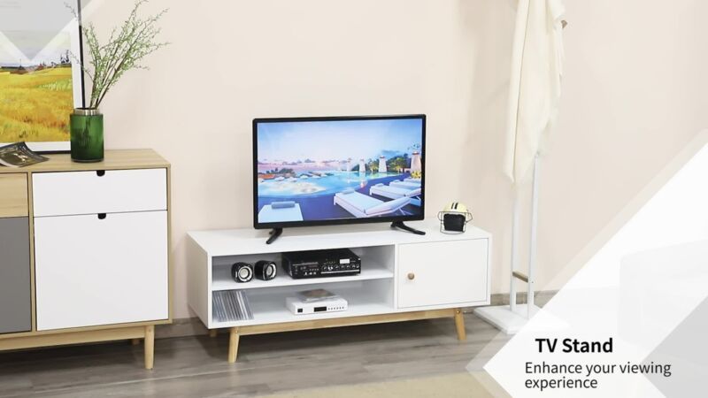 TV Cabinet Unit for TVs up to 50'' Flat Screen Console Table w/ Shelves and Door
