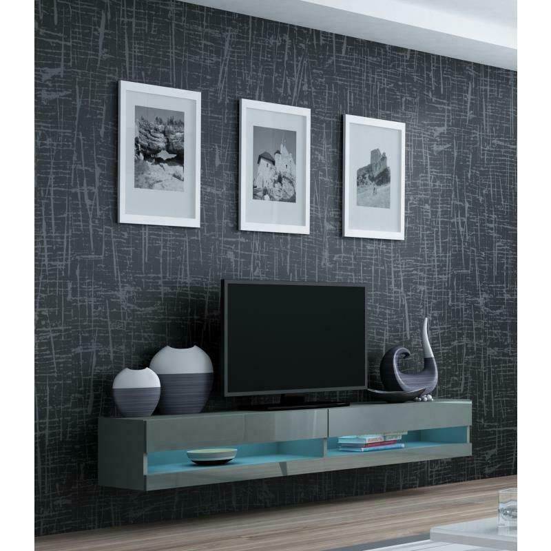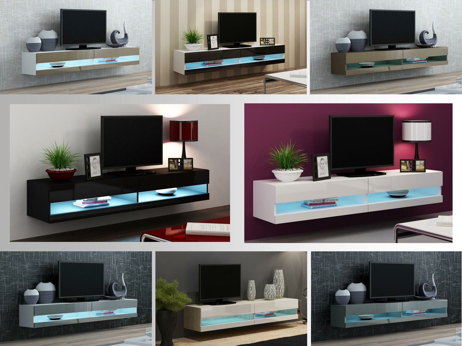 TV Cabinet with LED Lights High Gloss | Floating TV Wall Unit 140cm