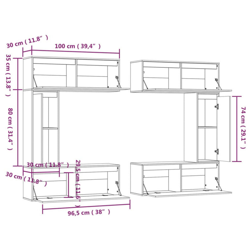 TV Cabinets 6 pcs Black Solid Wood Pine F6B0