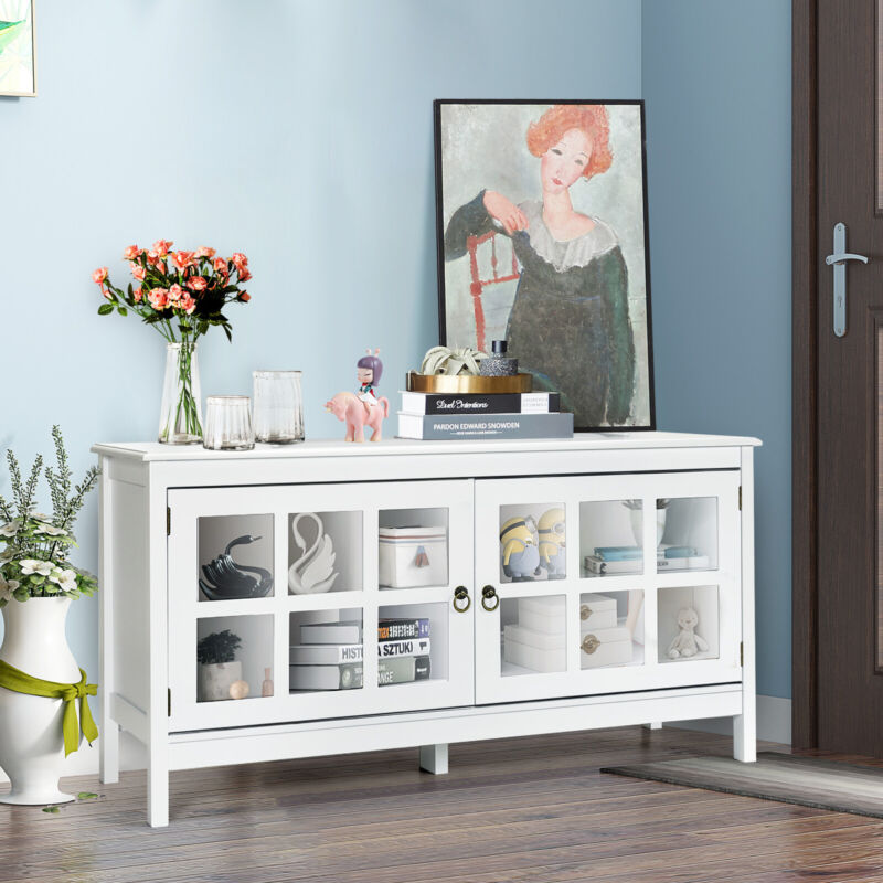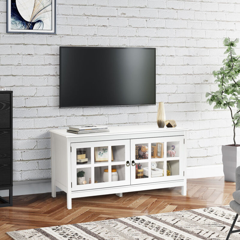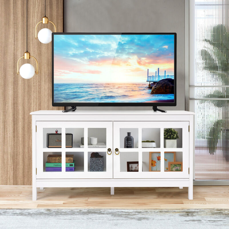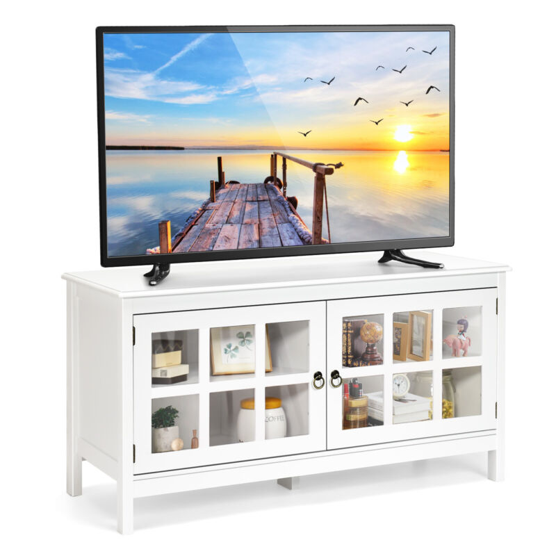 TV console table for TVs up to 50'' Modern TV Stand Glass Door Storage Cabinet