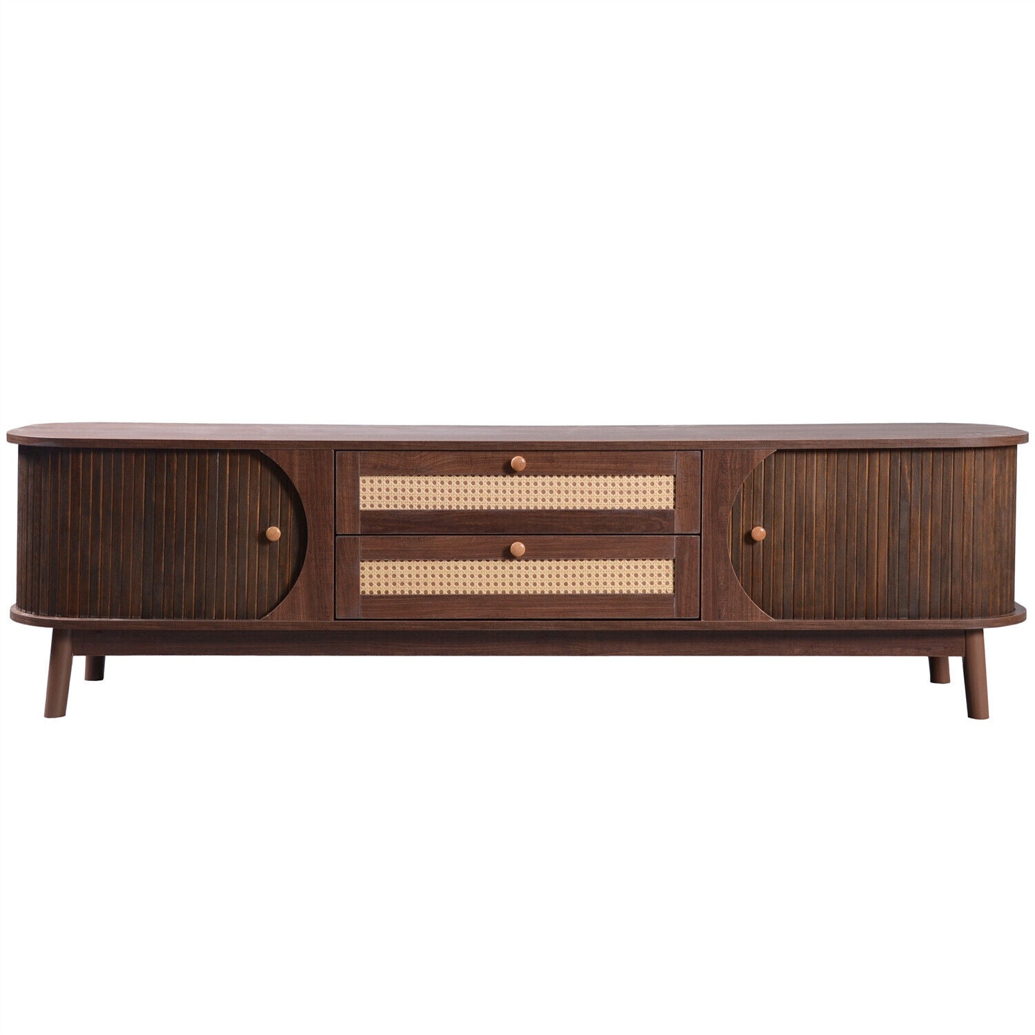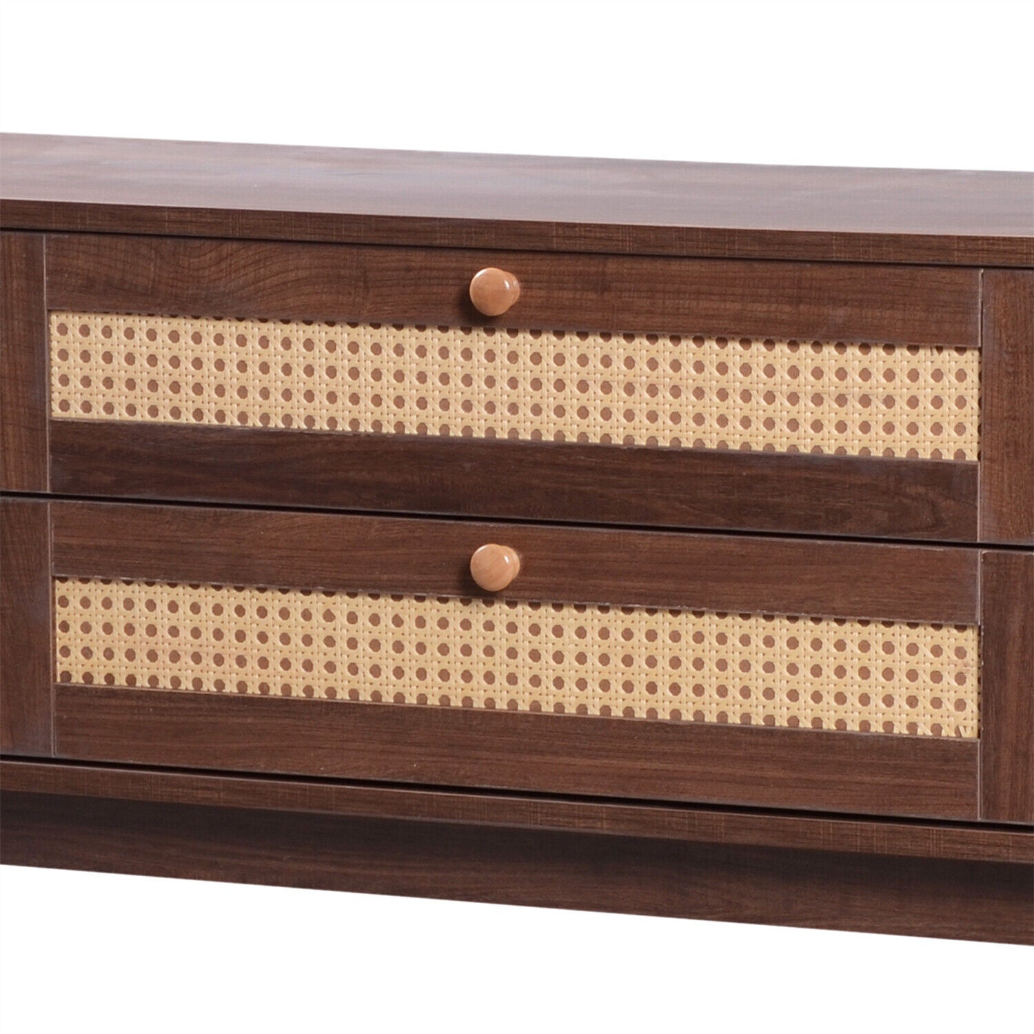 TV Stand Cabinet 2 Drawers 2 Doors Wooden Rattan TV Entertainment Unit Brown