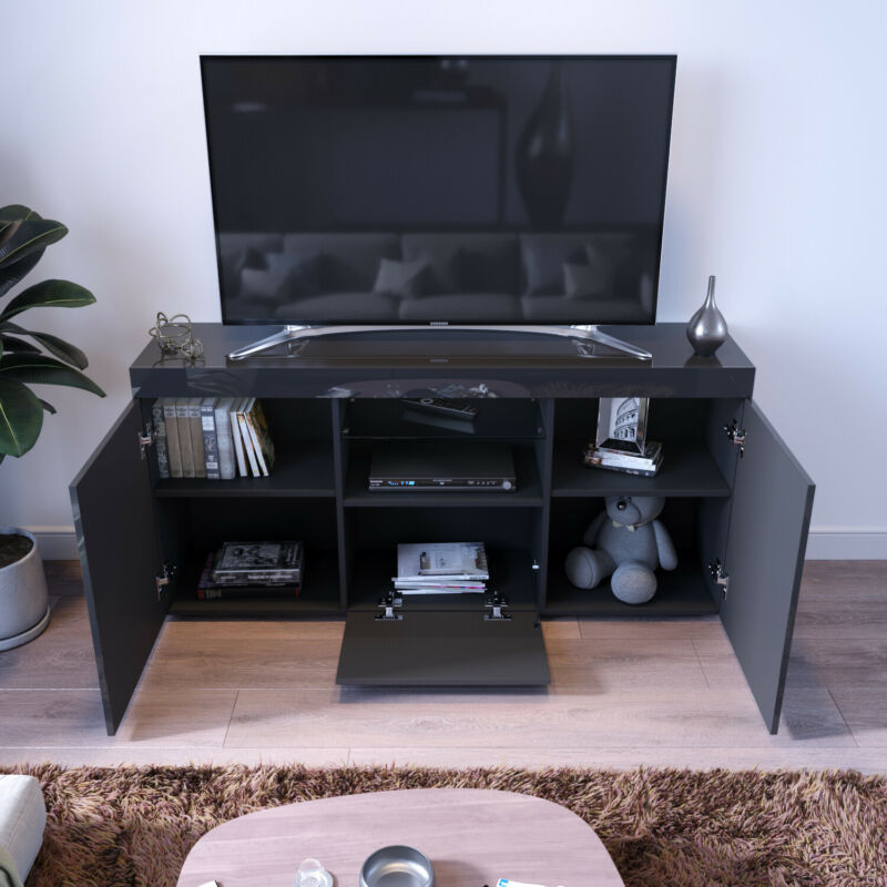 TV Stand Entertainment Cupboard with RGB LED Lights High Gloss Unit Cabinet