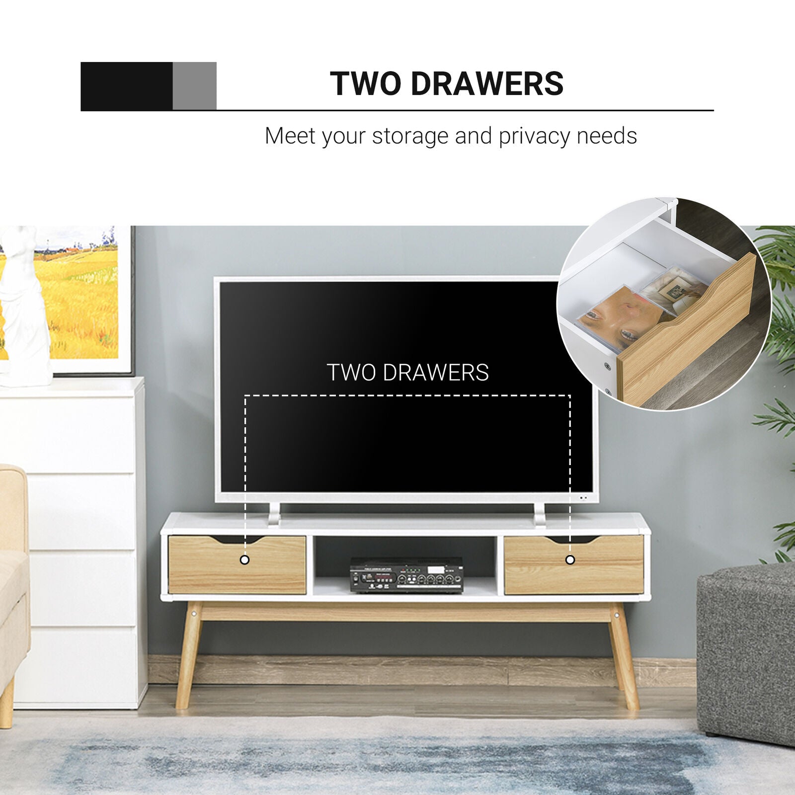 TV Stand Media Unit Cabinet w/ Open Shelf Drawers Storage Entertainment Center