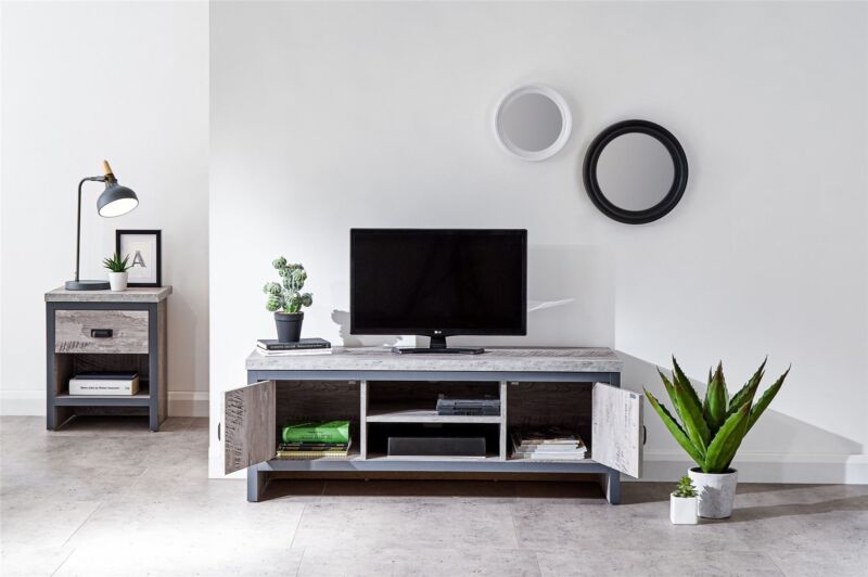 TV Stand Unit Cabinet Media Entertainment 2-Door Cupboard Storage Shelf Grey