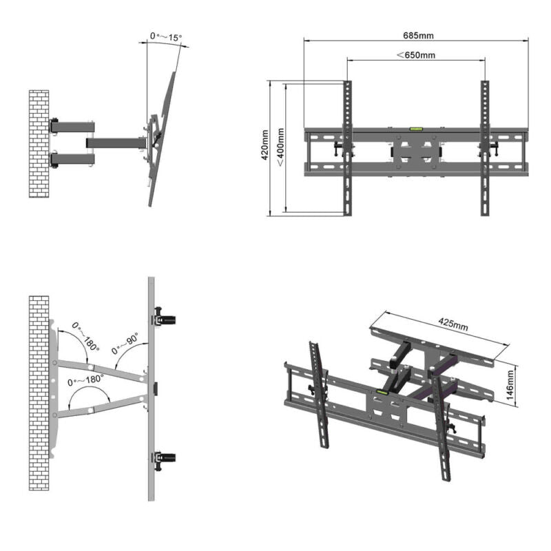 TV Stand Wall Mount Bracket Tilt Plasma for 32 40 42 46 50 55 60 70" Double Arms
