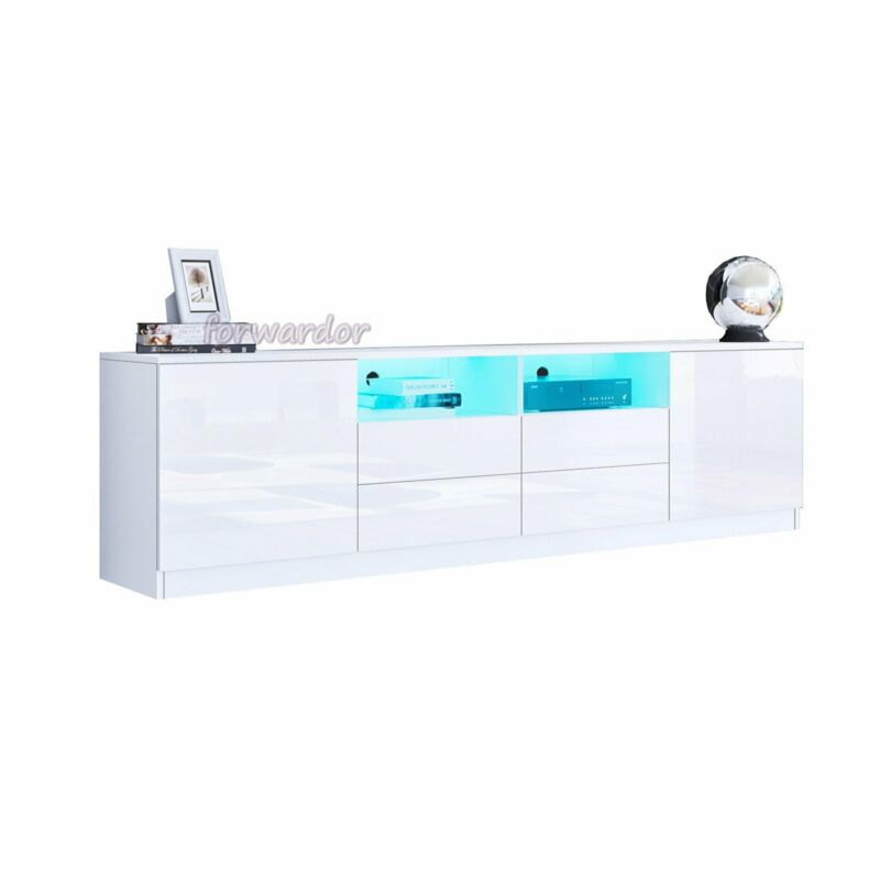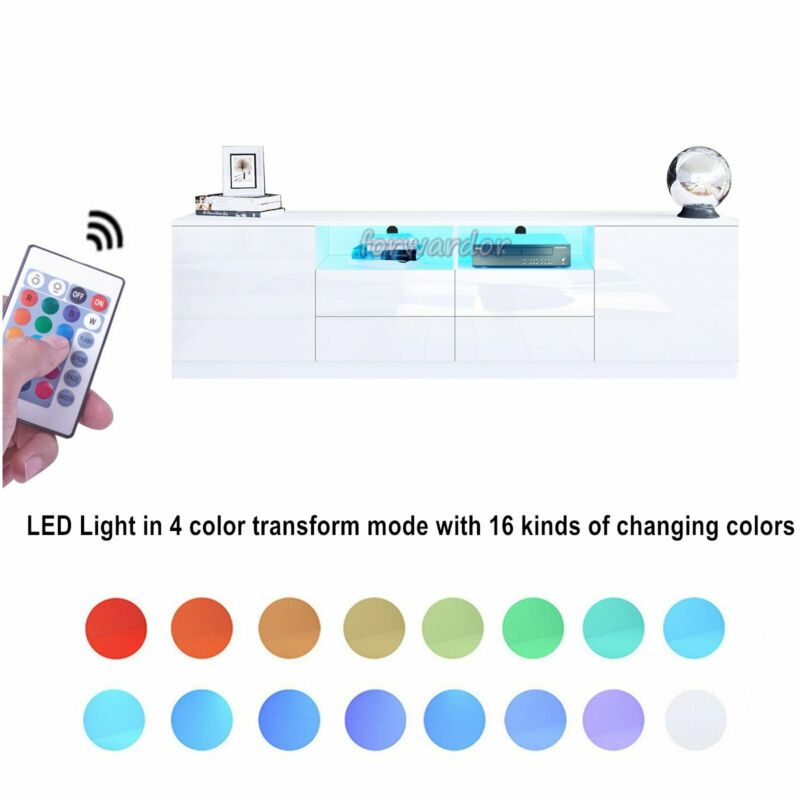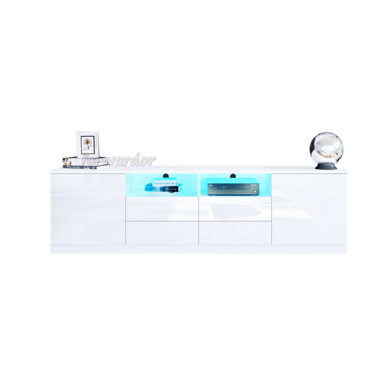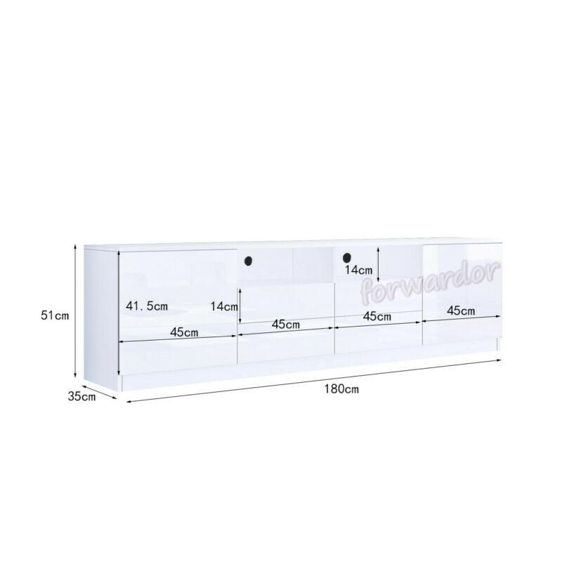 TV Unit Cabinet 180cm Width LED Light High Gloss with 2 Door 4 Drawers Sideboard