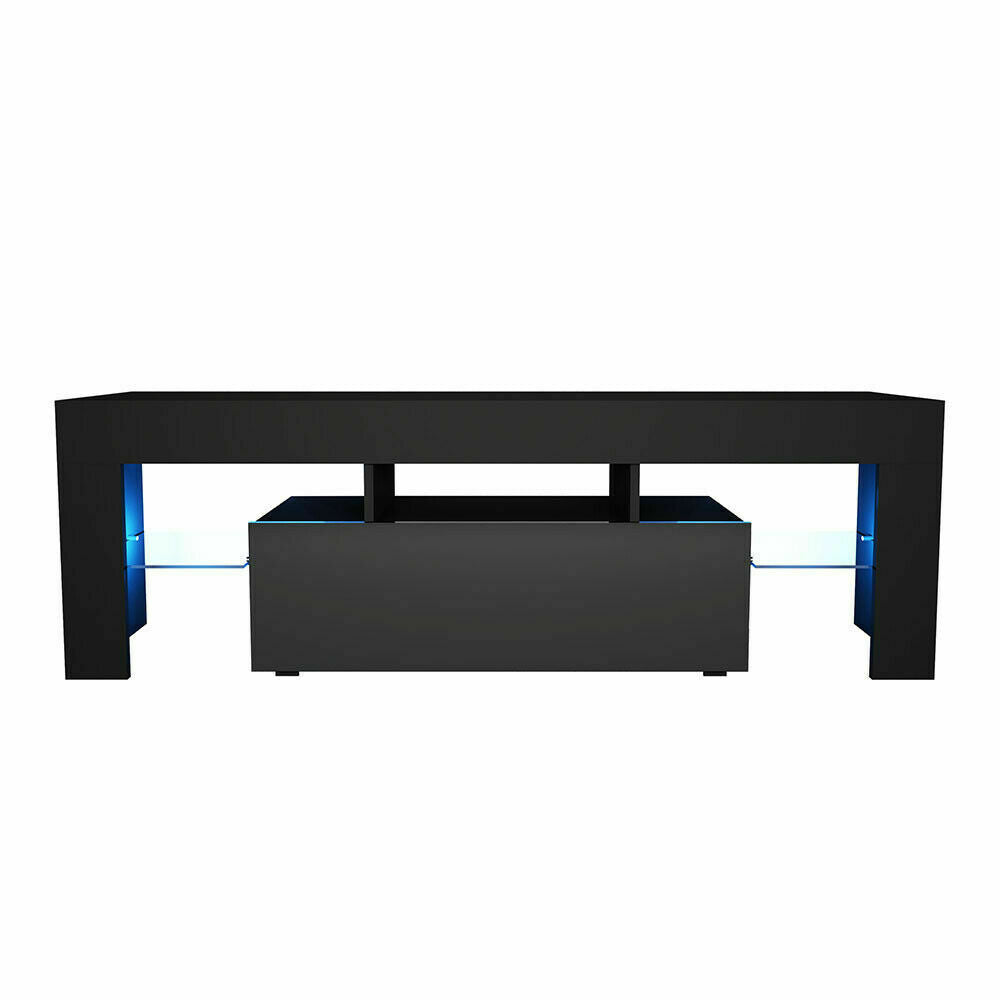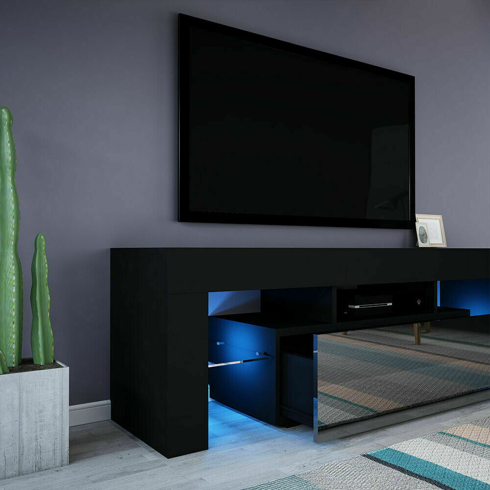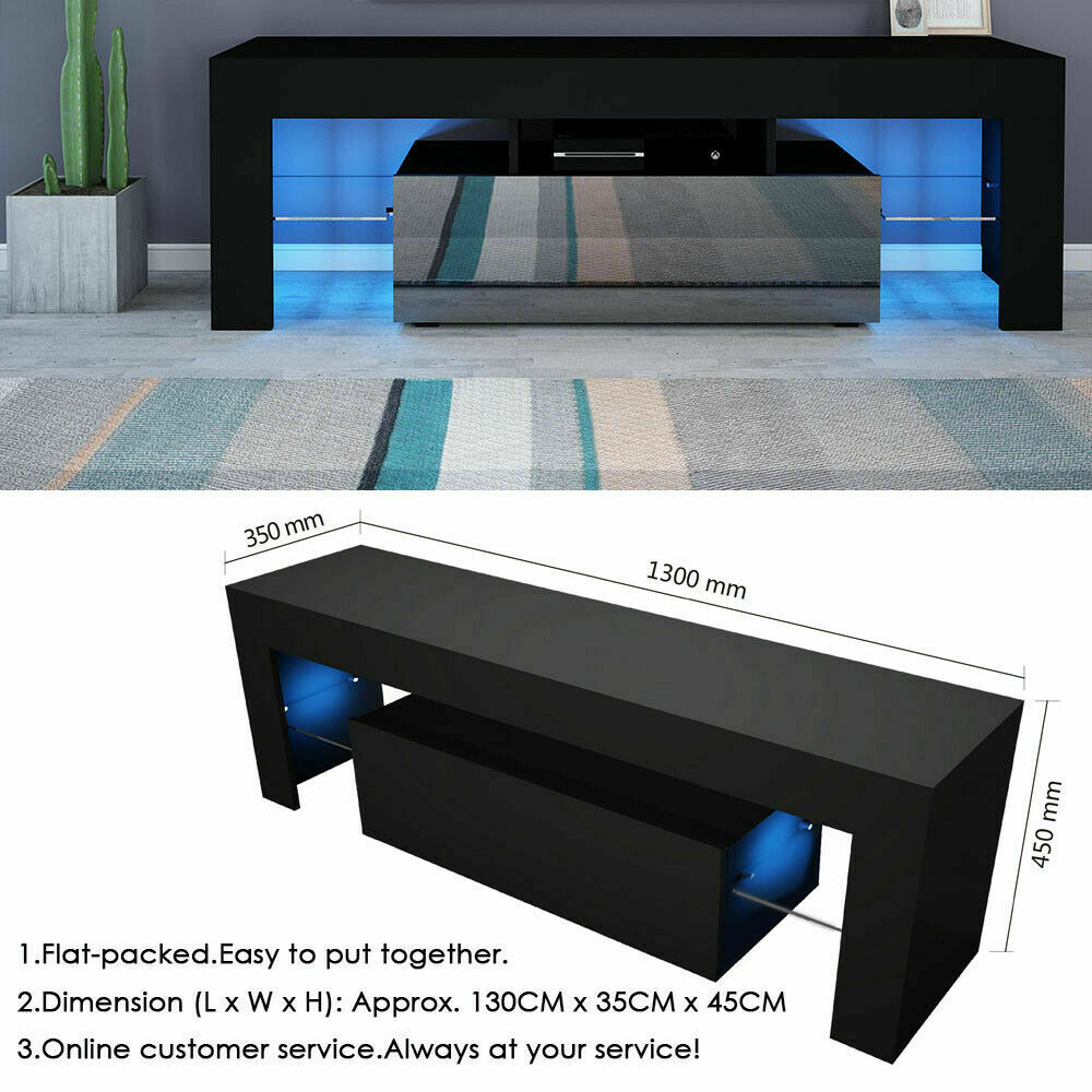 TV Unit Cabinet Stand Black High Gloss with LED Lights Drawers 130cm Modern