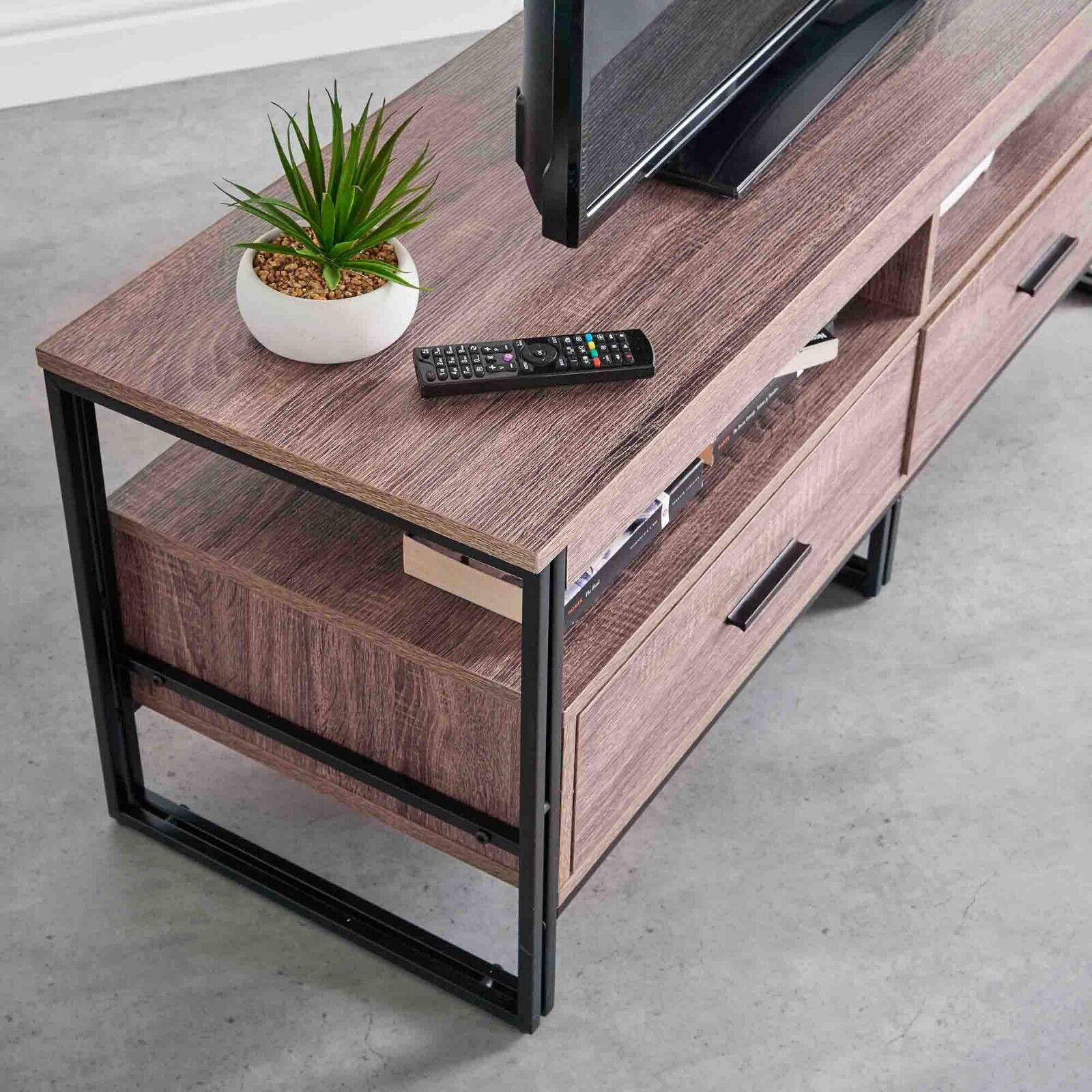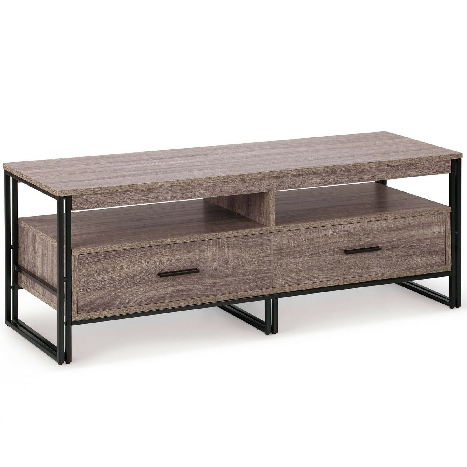 TV Unit Cabinet Stand Dark Wood Effect w/ Storage Drawers & Shelves | VonHaus