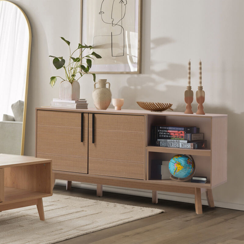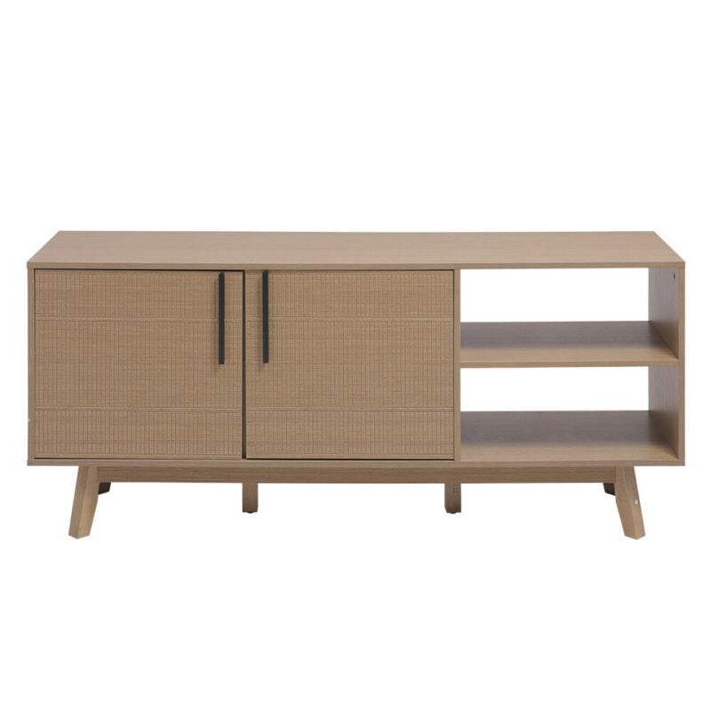 TV Unit Cabinet Wooden Media Stand with Storage Shelves Living Room Table 59inch