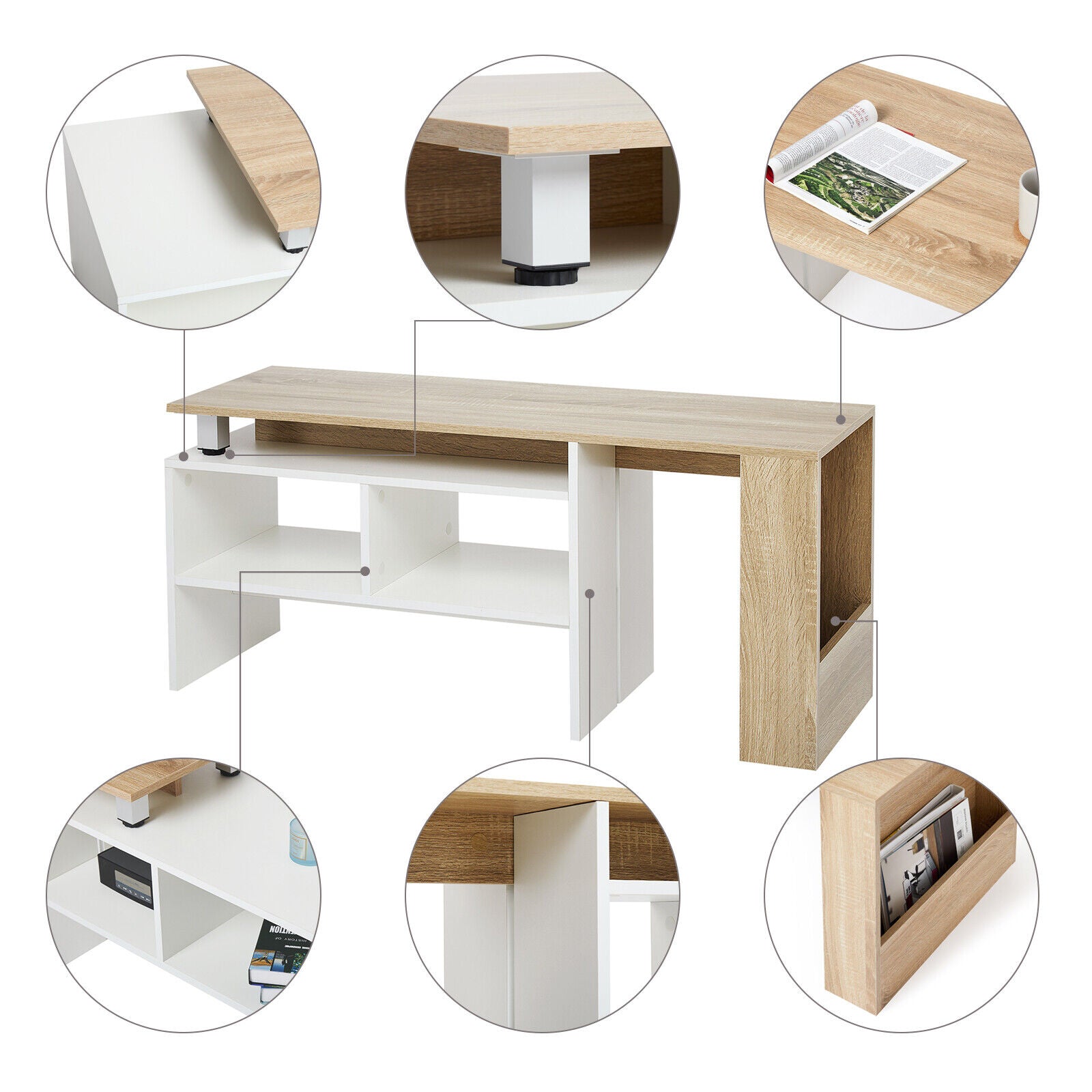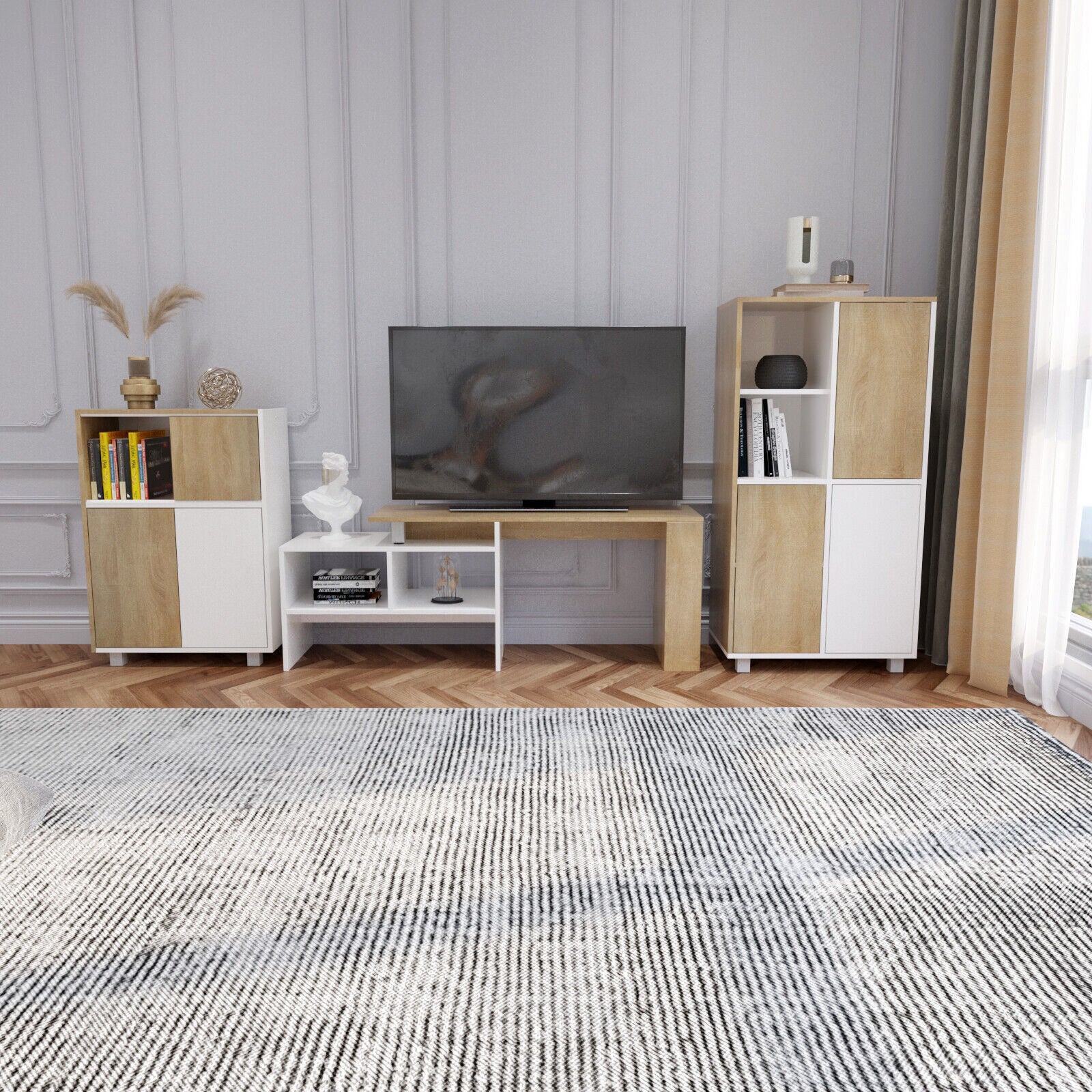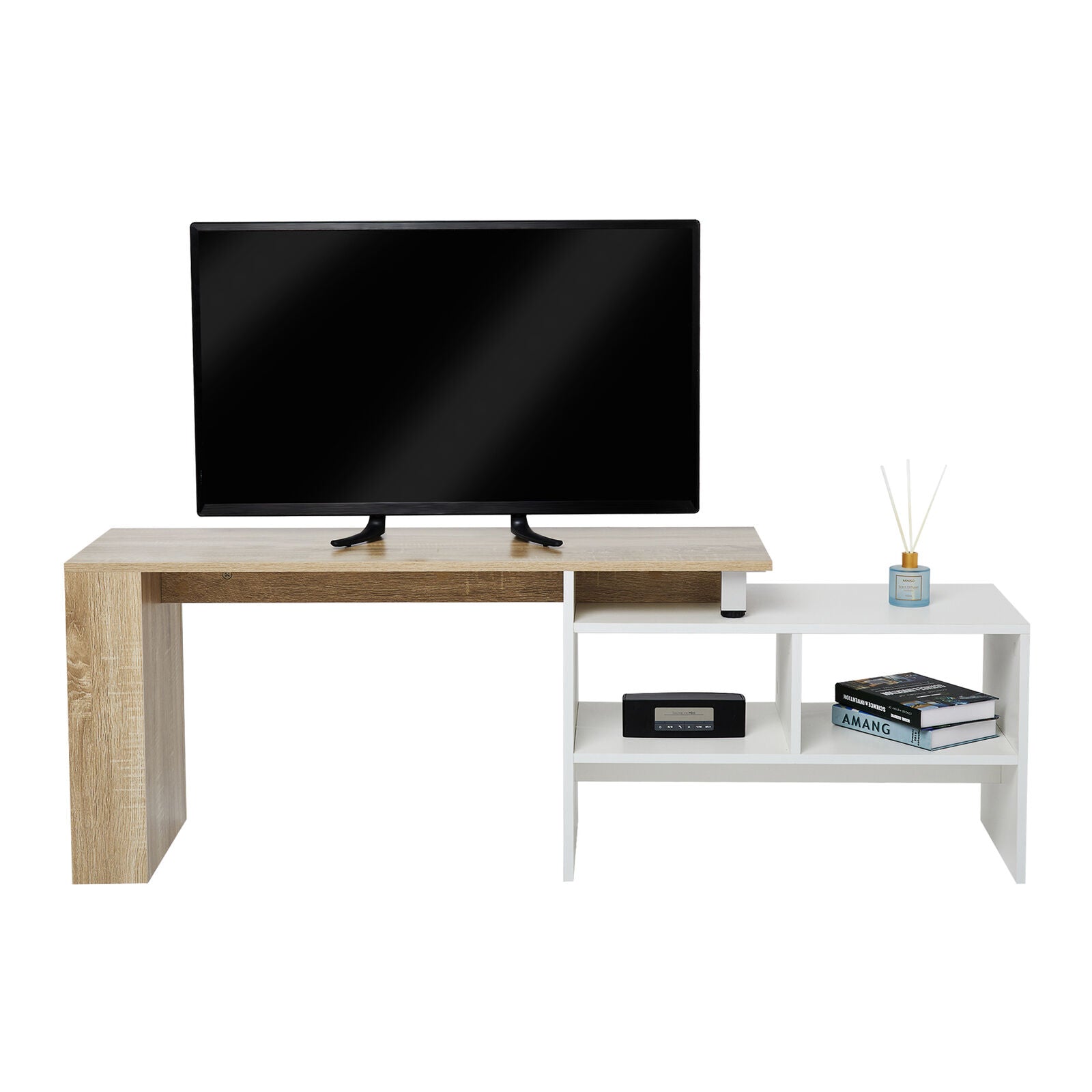 TV Unit TV Cabinet Extendable Adjustable Direction Wood Modern White and Oak