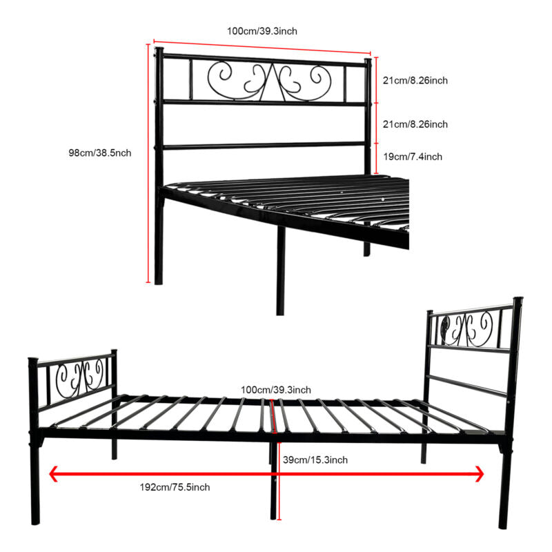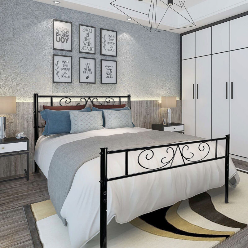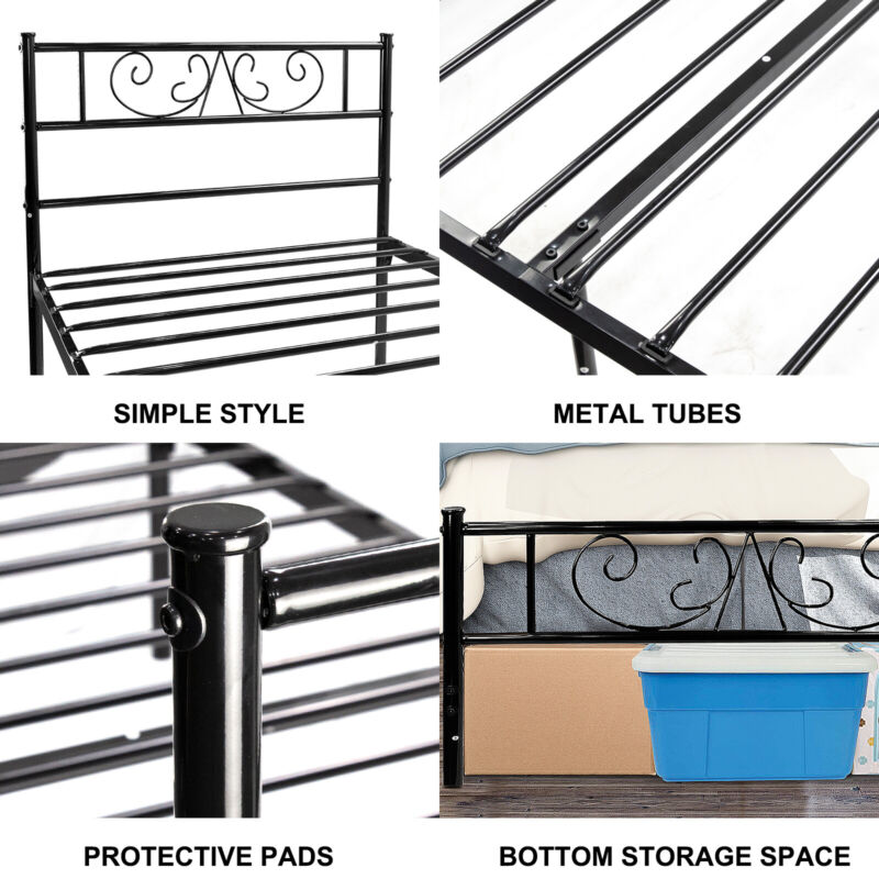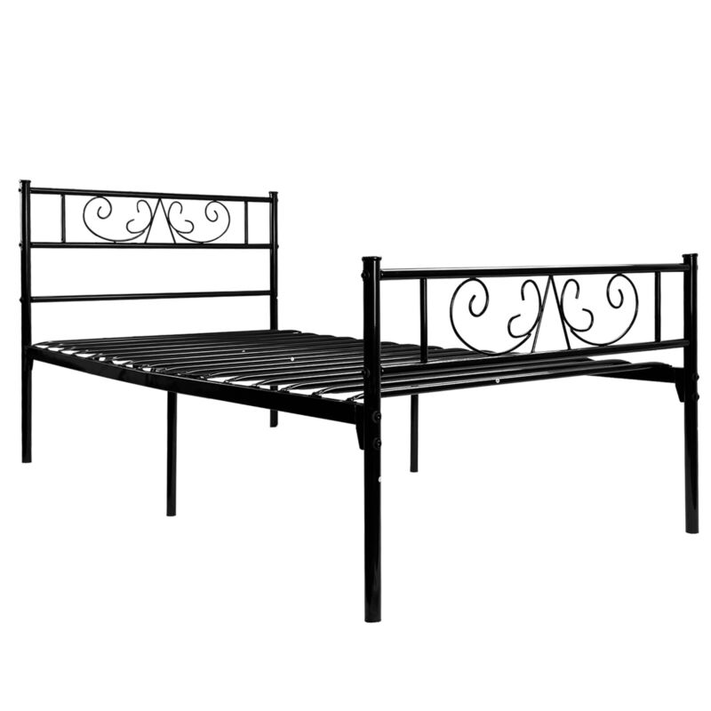 Twin Size Metal Bed Frame with Headboard and Footboard Mattress Foundation Black