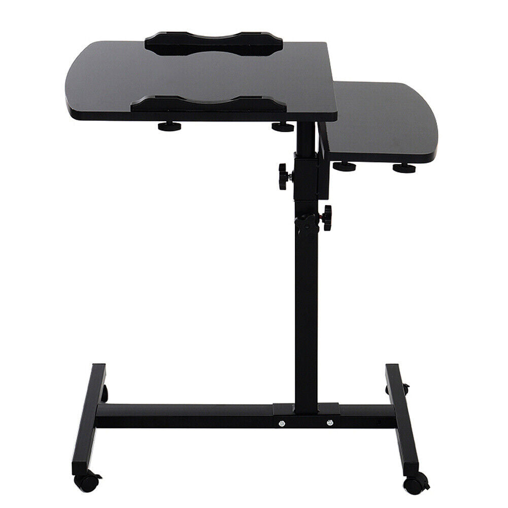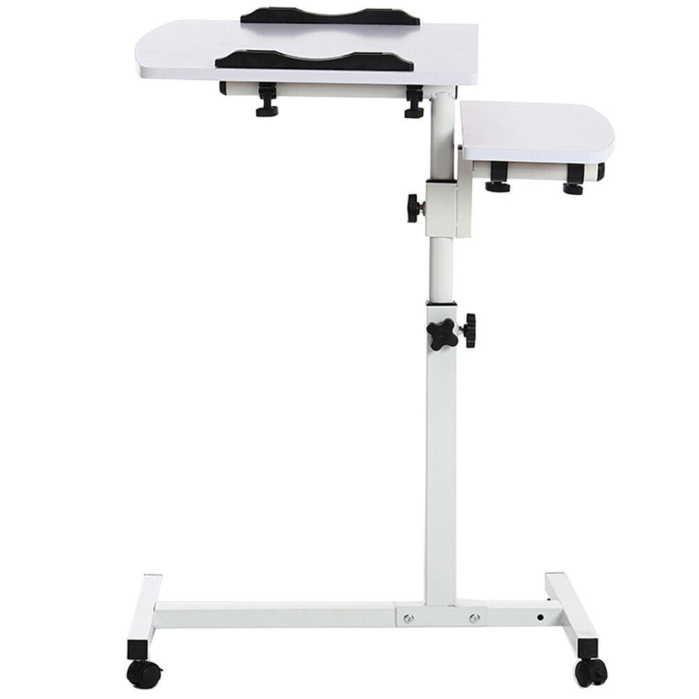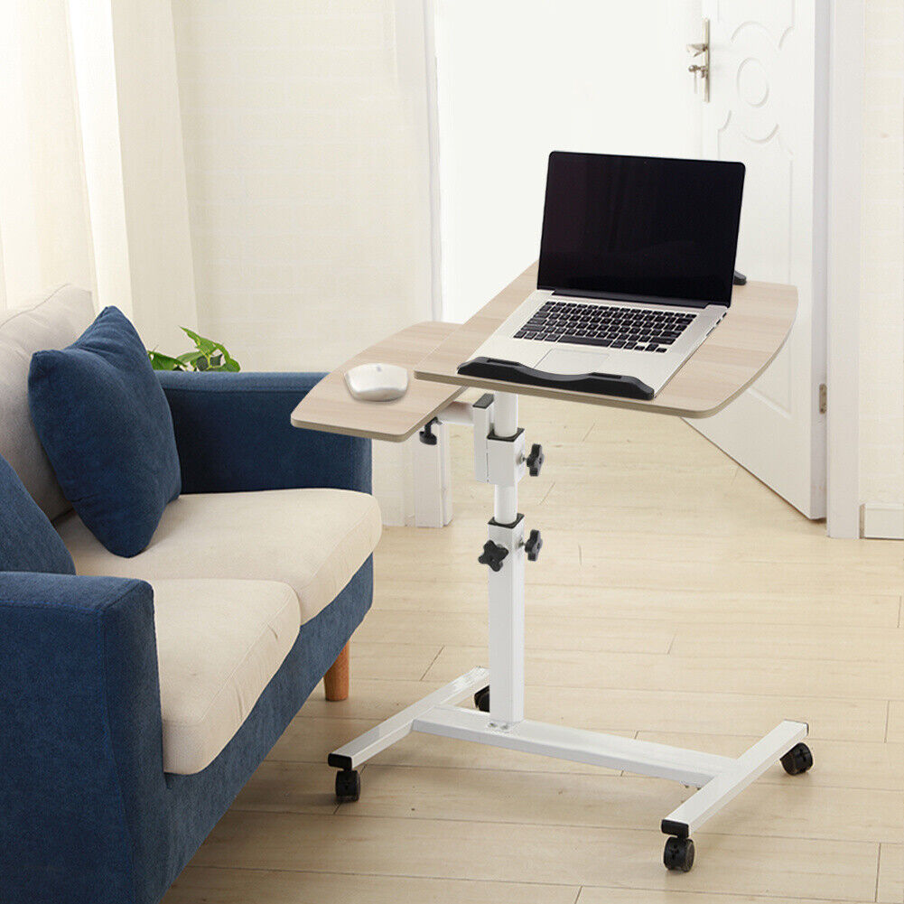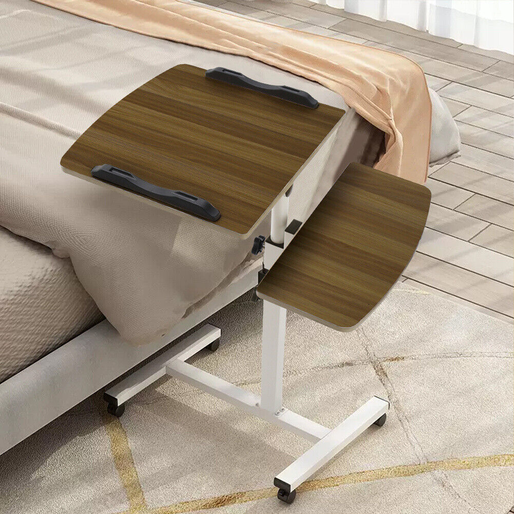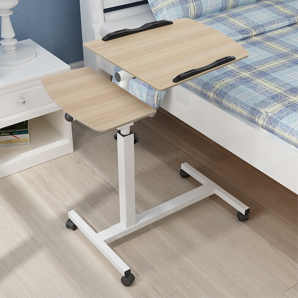 Twin Top Over Bed Chair Laptop Table Adjustable Height Mobility Aid on Wheels