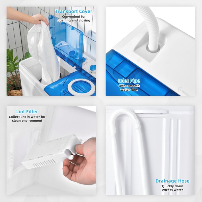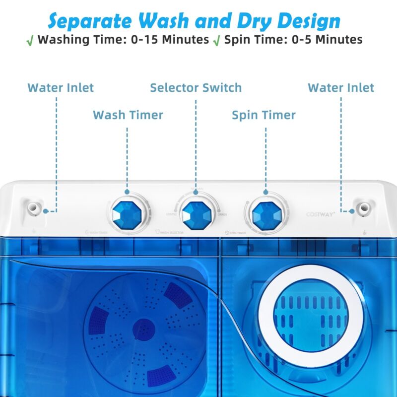 Twin Tub Washing Machine 2-in-1 Washer &Spin Dryer Semi-automatic Laundry Washer