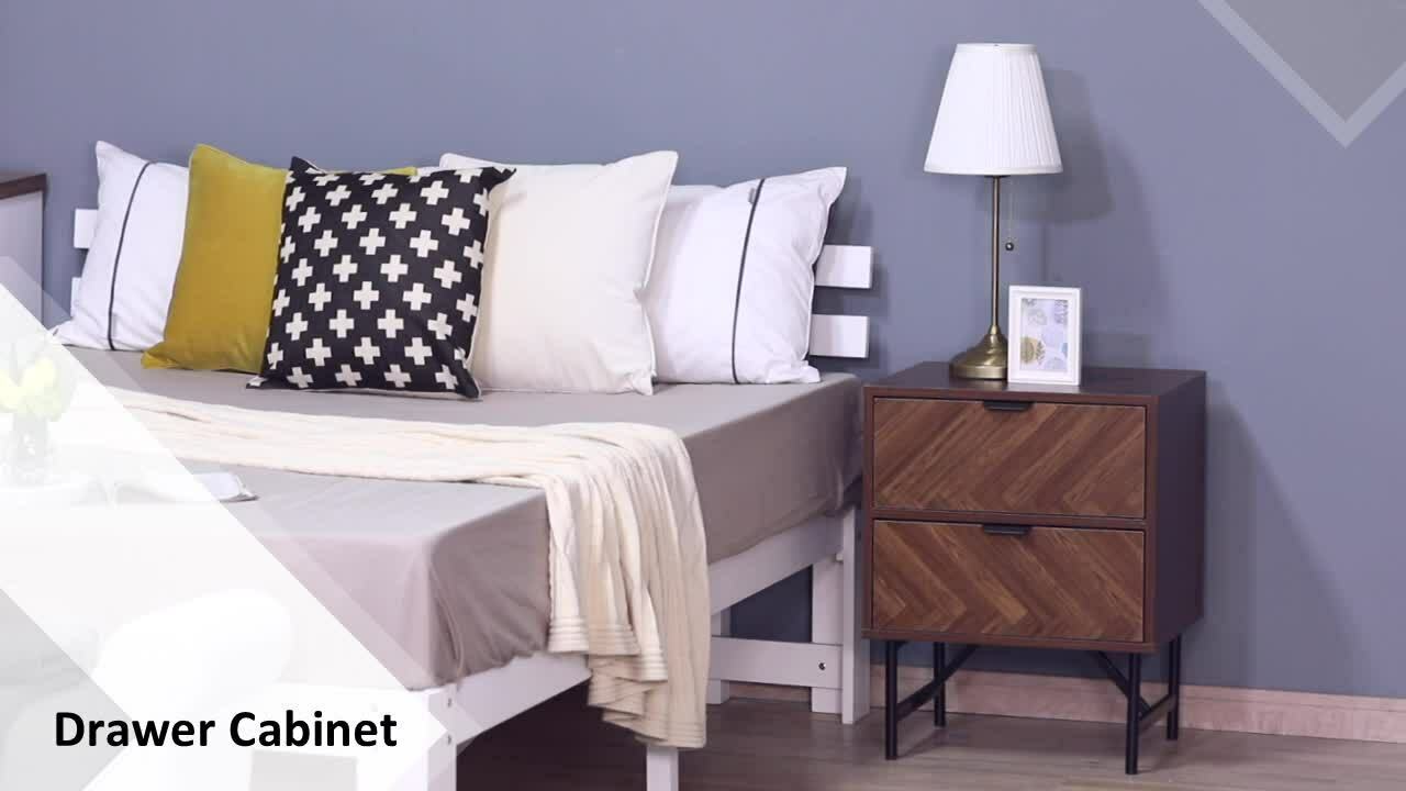 Two-Drawer Herringbone Bedside Table Home Side Cabinet Bedroom Storage Brown