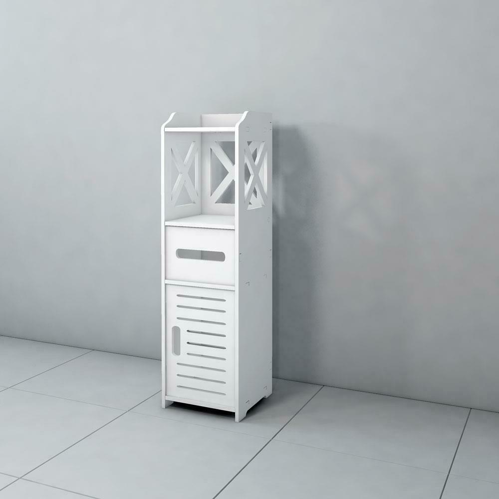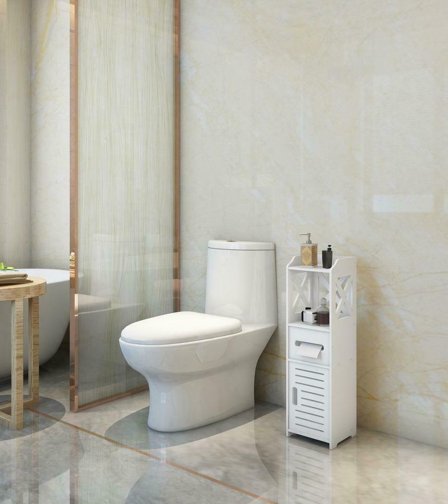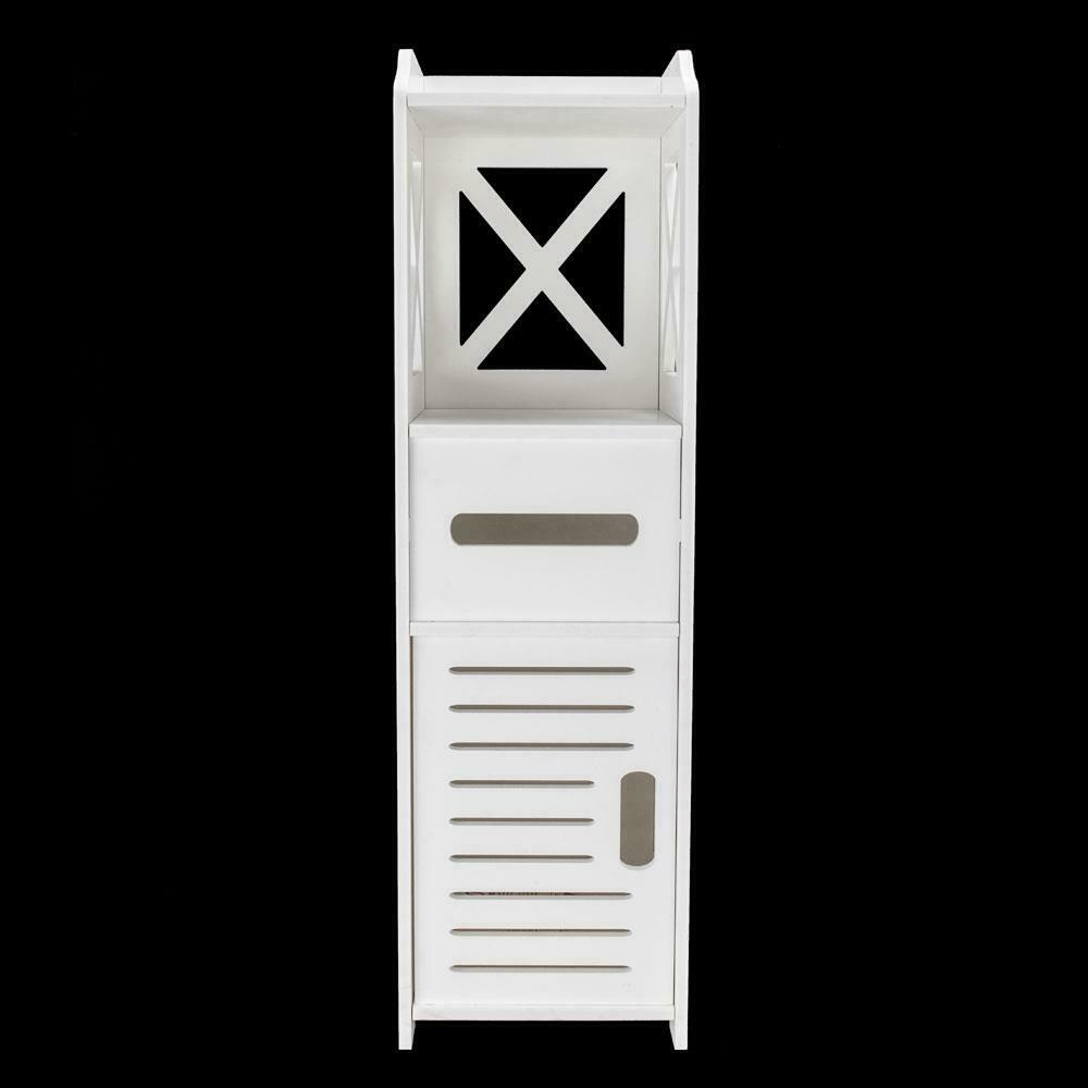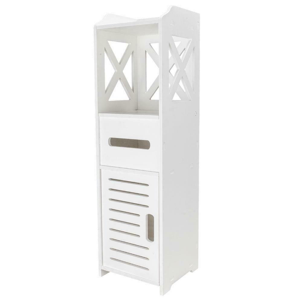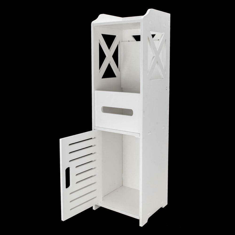 Two Tier Bathroom Cabinet Slim Shelf Cupboard Storage Sink Toilet Paper White