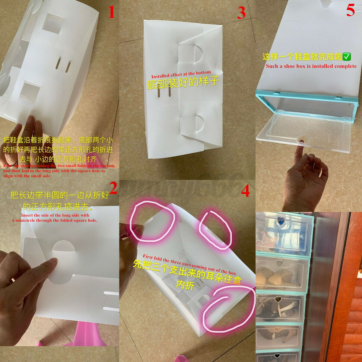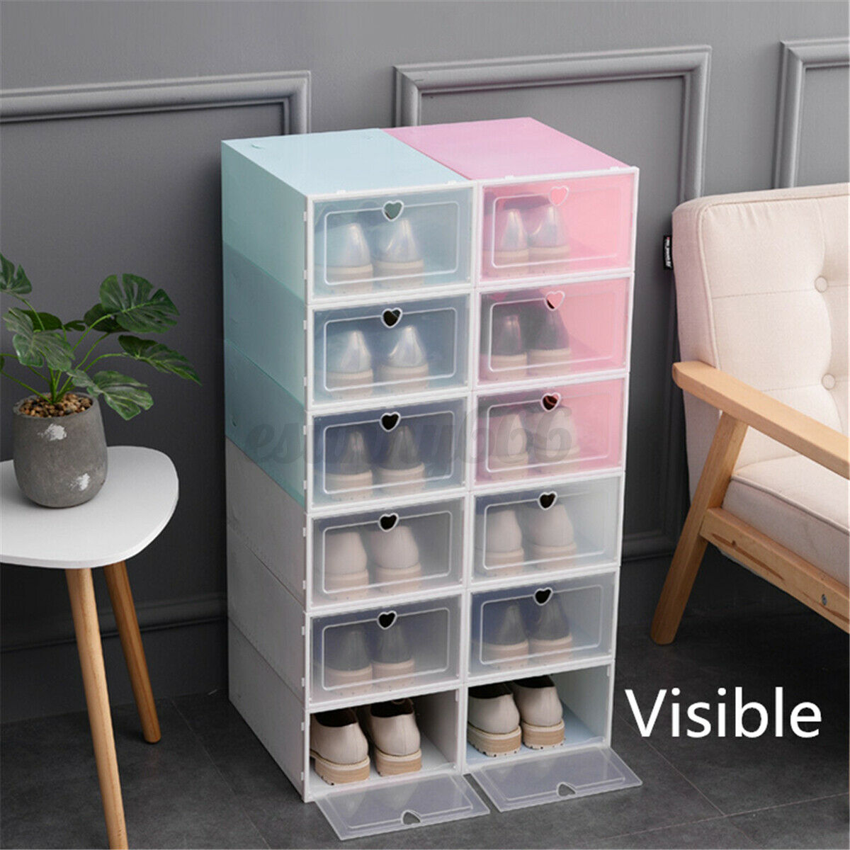 UK 1/2/4PCS Shoe Box Storage Organizer Stackable Tidy Case Holder Saving