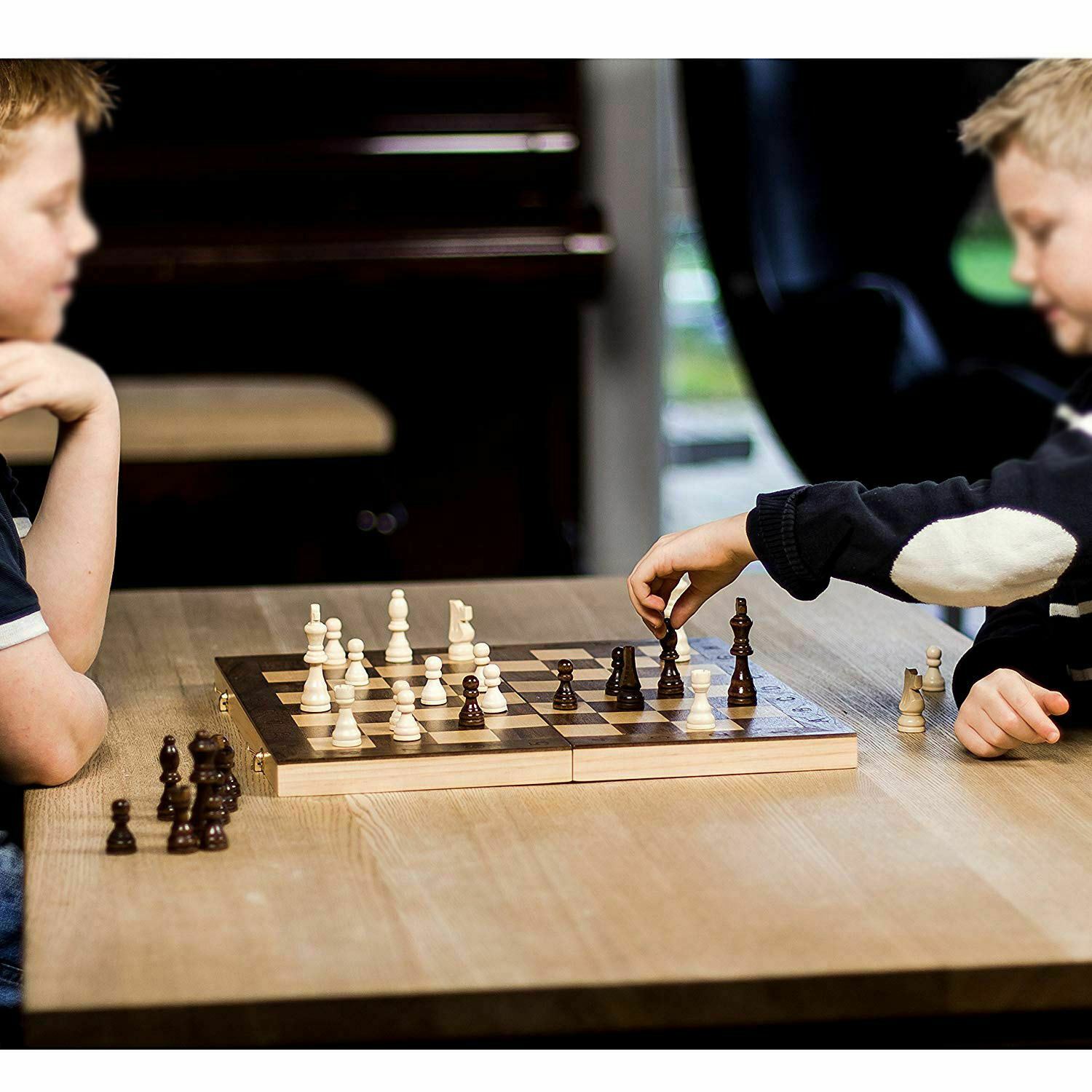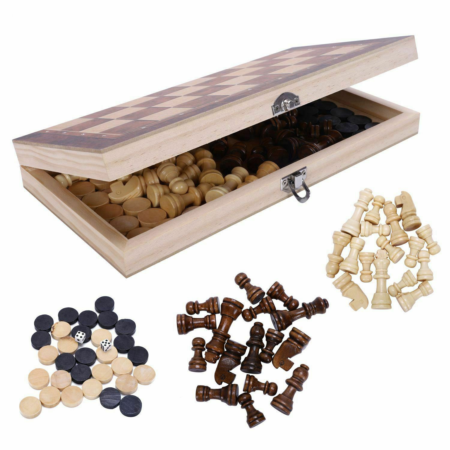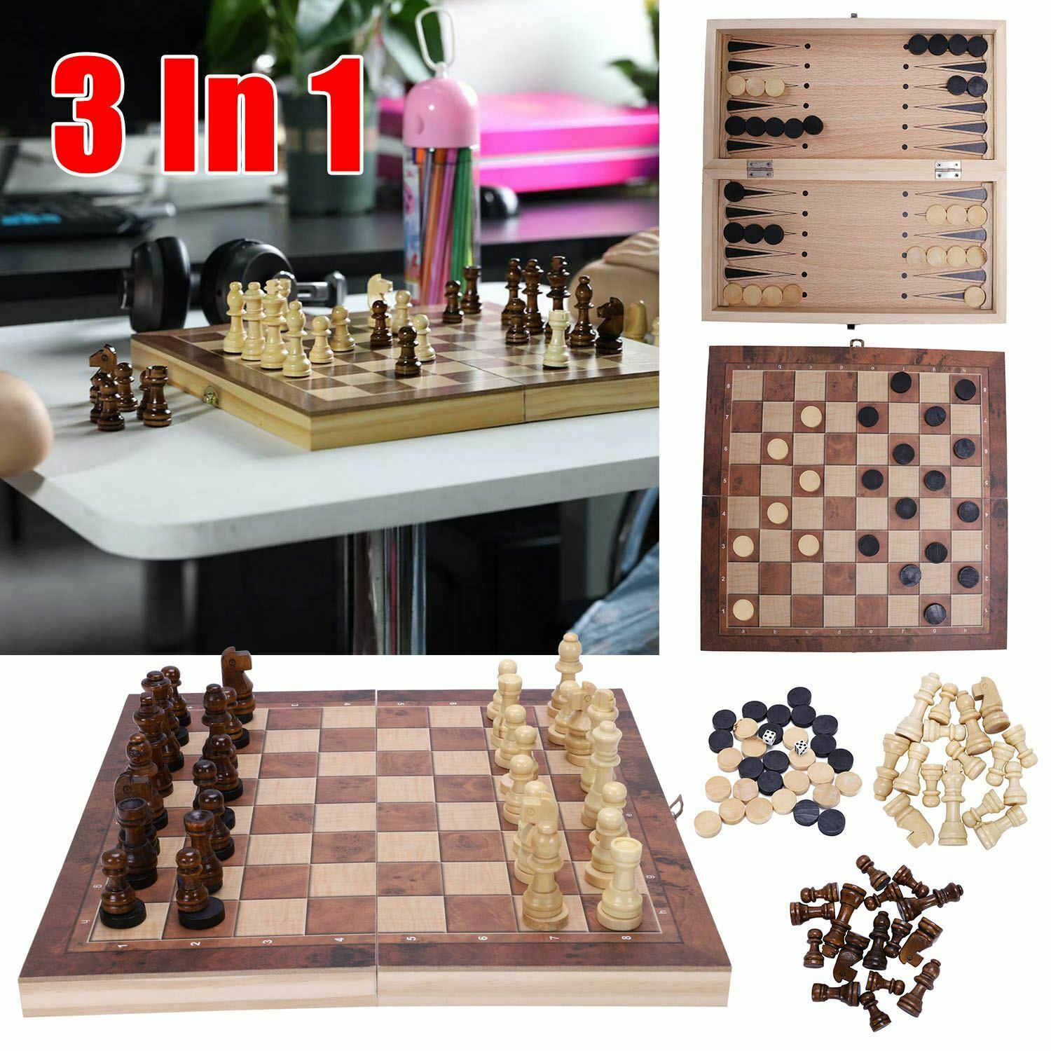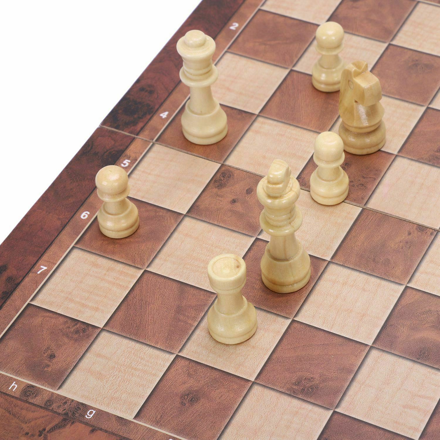 UK 3 IN 1 Large Chess Wooden Set Folding Chessboard Pieces Wood Board New Hot PT