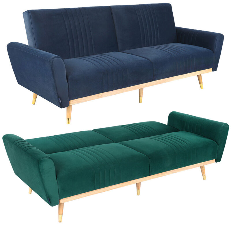 UK 3 Seater Sofa Bed 3-Position Convertible Sleeper Couch Recliner Velvet Settee