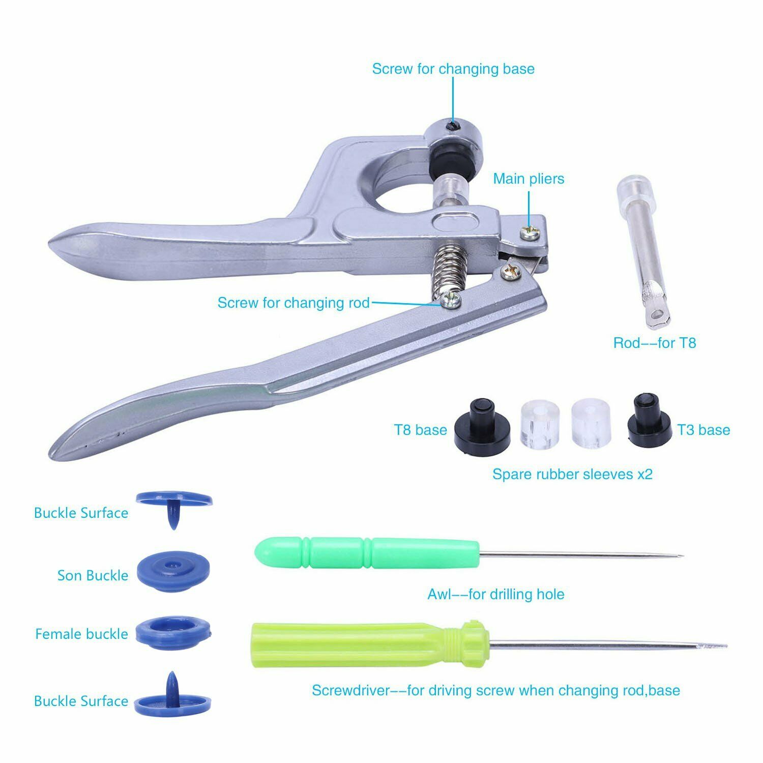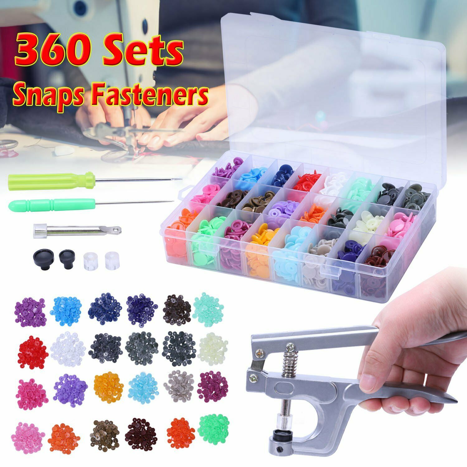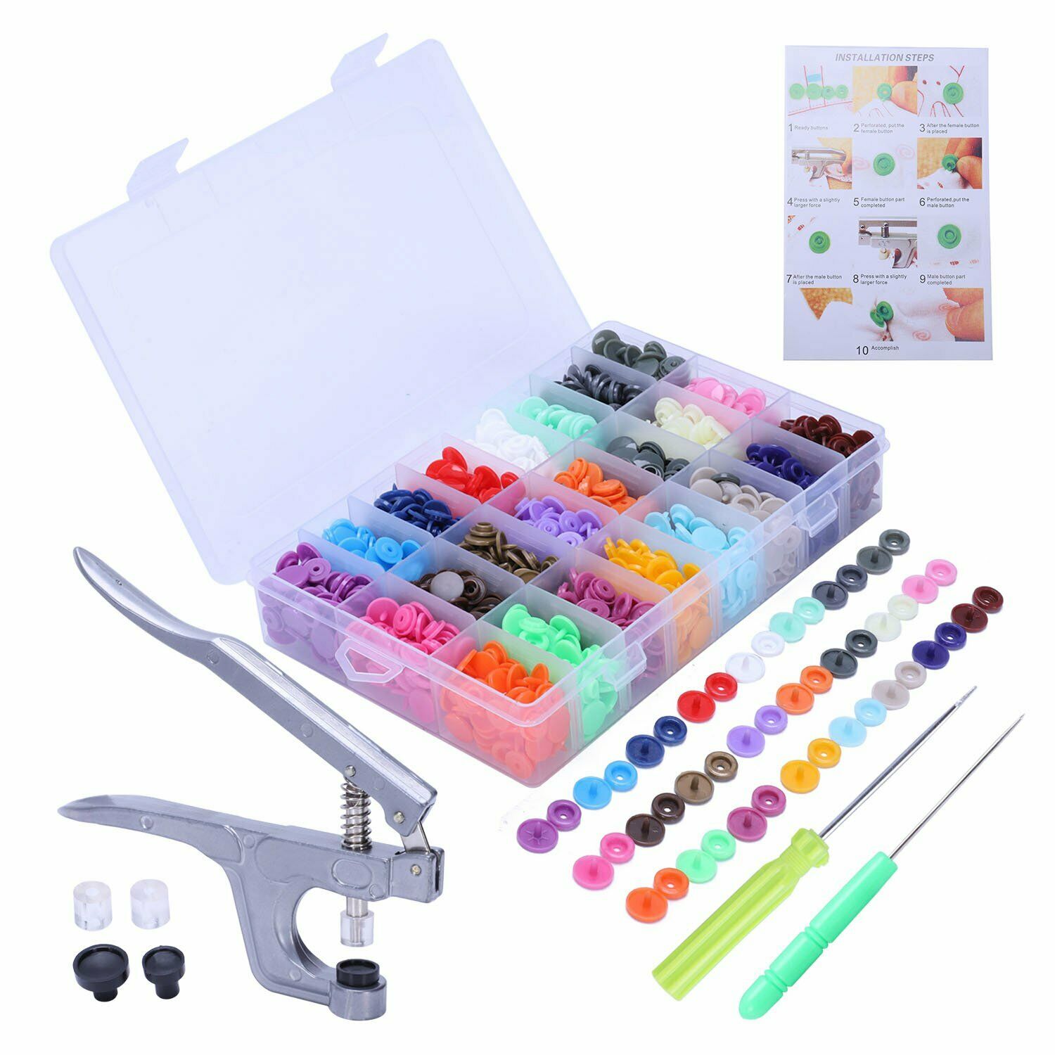 UK 360pcs/set Prong Pliers Ring Press Studs Snap Popper Fasteners Tool Kit