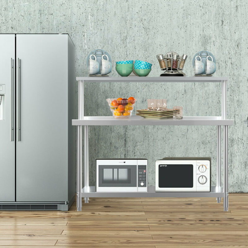 UK 5Ft Steel Commercial Prep Catering Table w/ Over Shelf Kitchen Workbench Unit