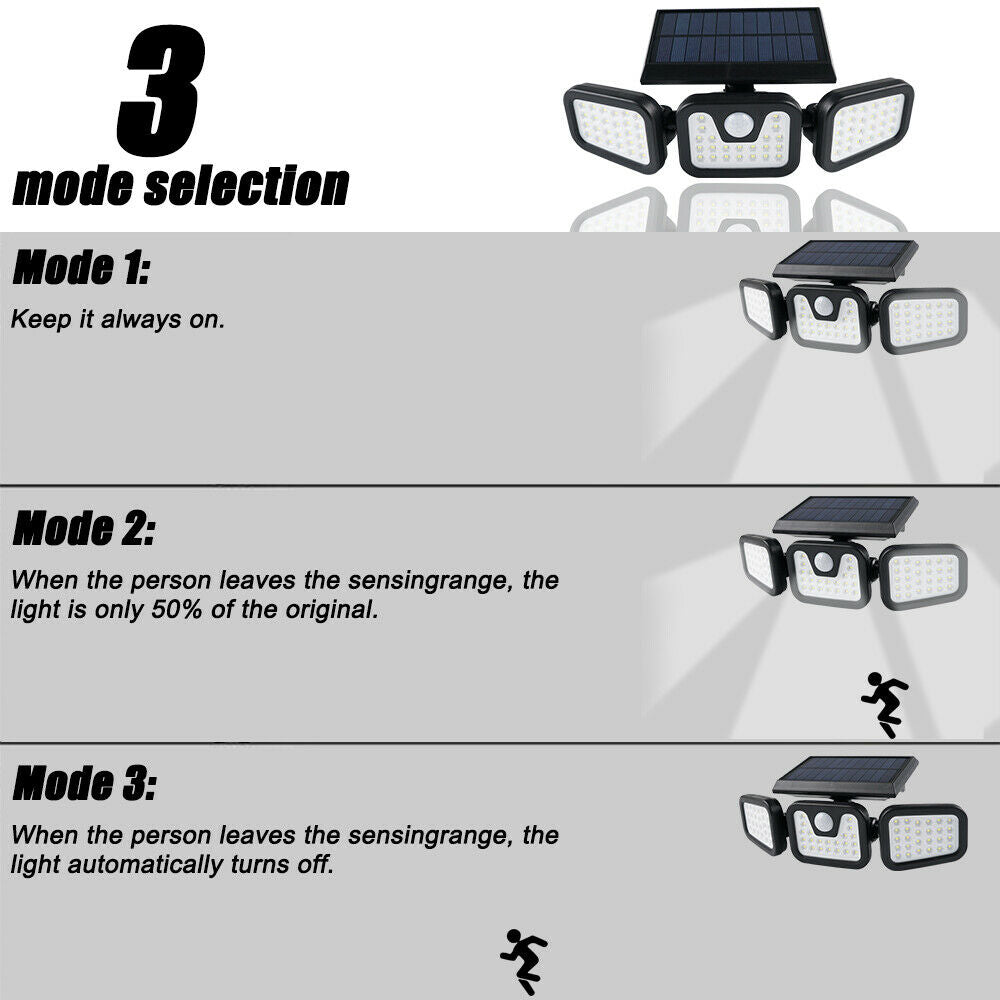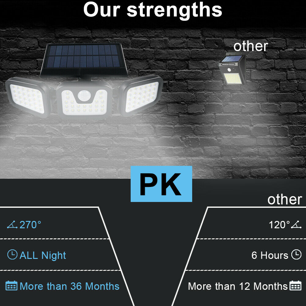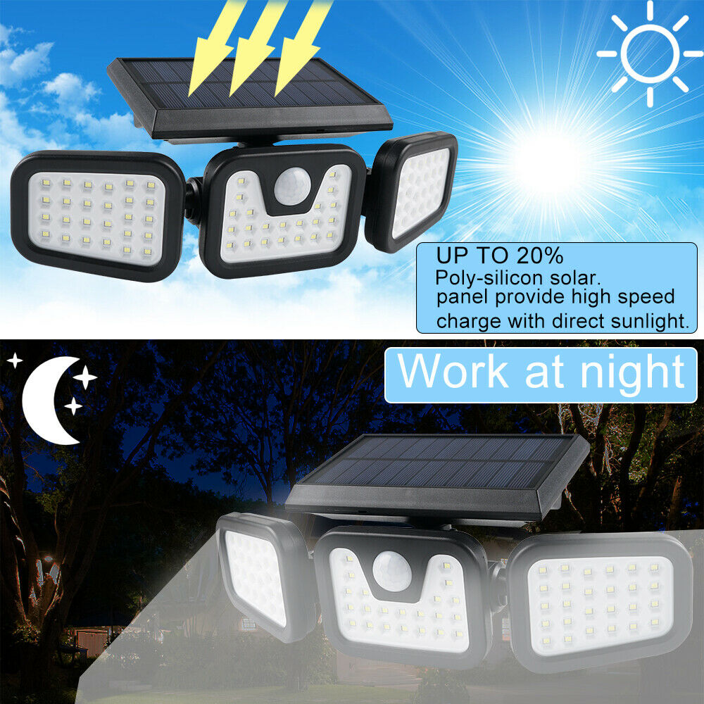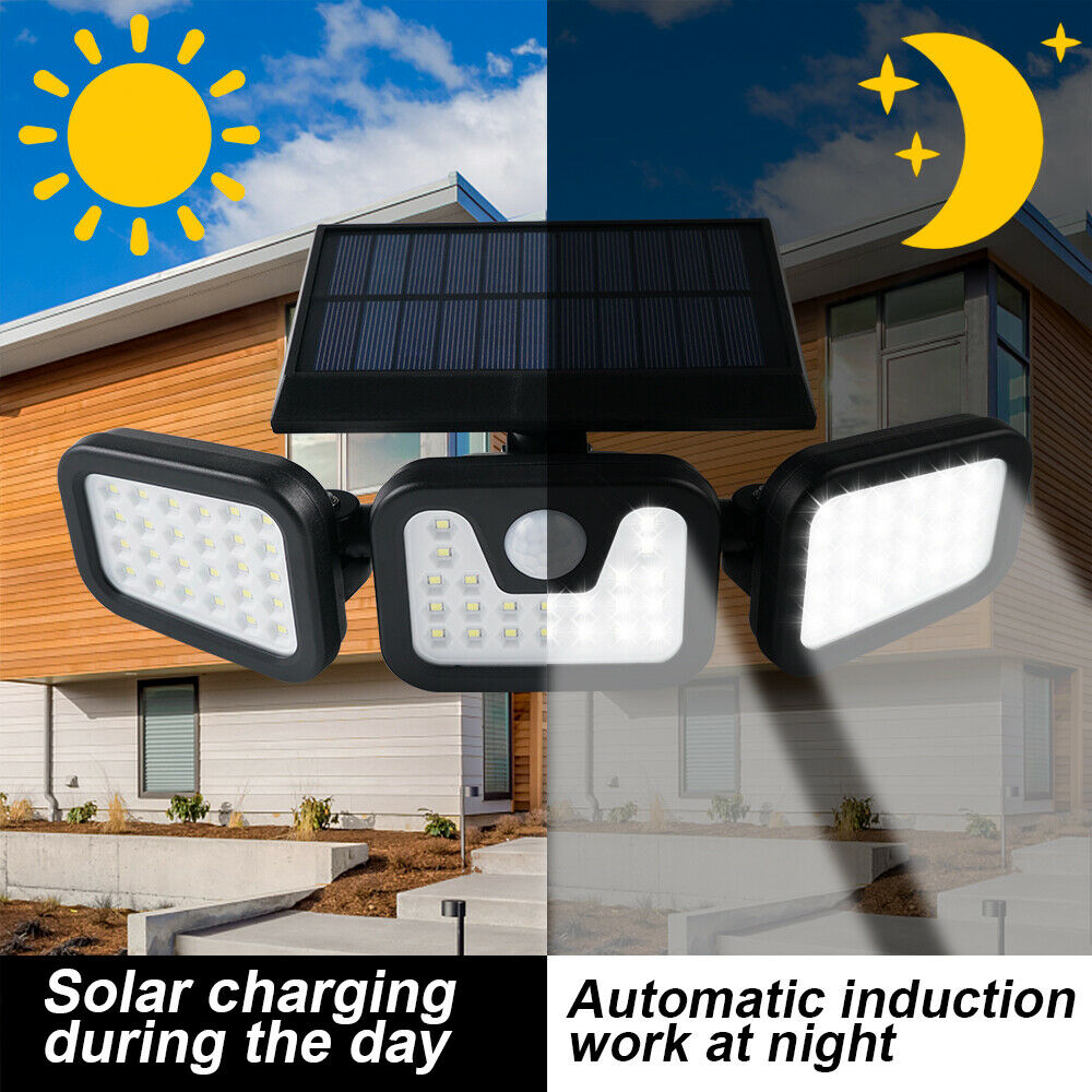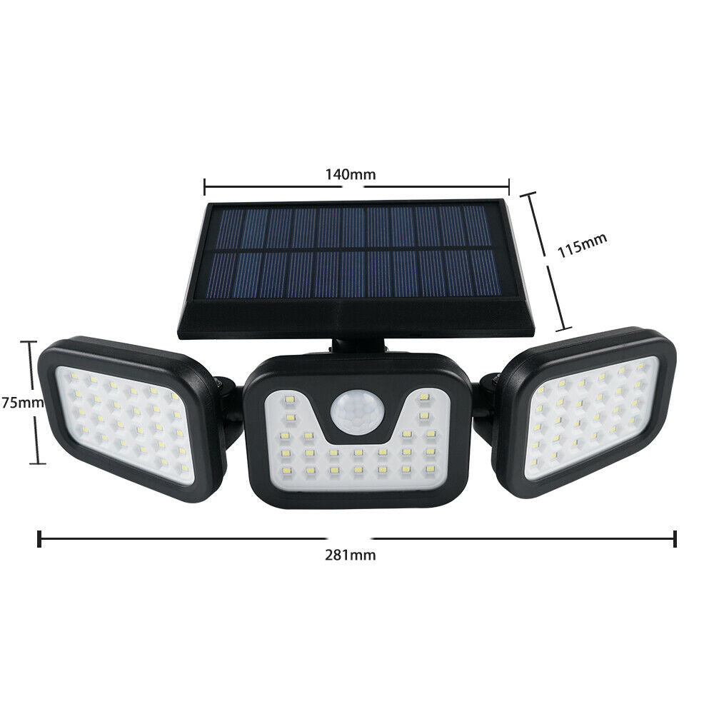 UK 74 LED Solar Power PIR Motion Sensor Lamp Outdoor Garden Security Wall Light