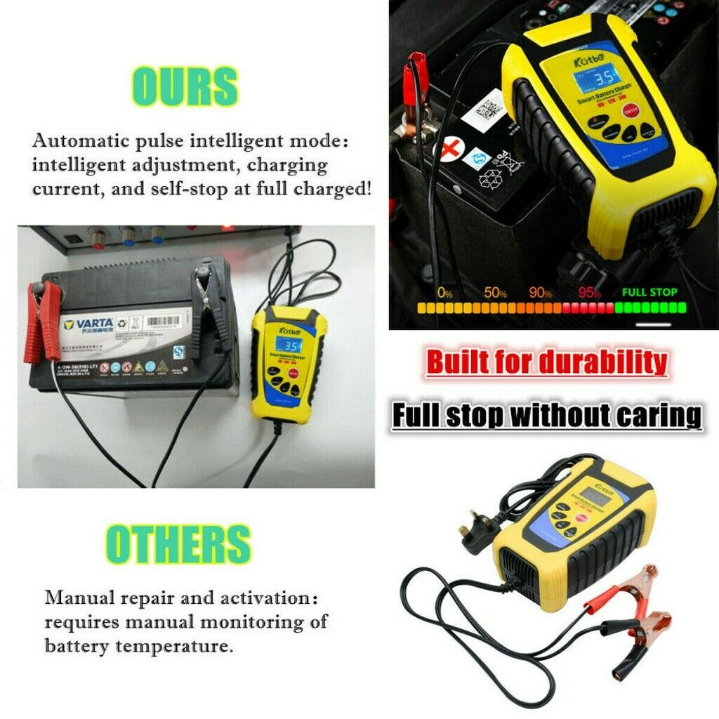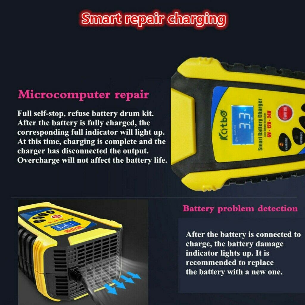 UK Car Battery Charger Vehicle Motorcycle Pulse Repair Heavy Duty 6V 12V 24V