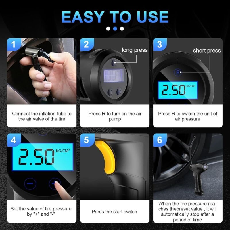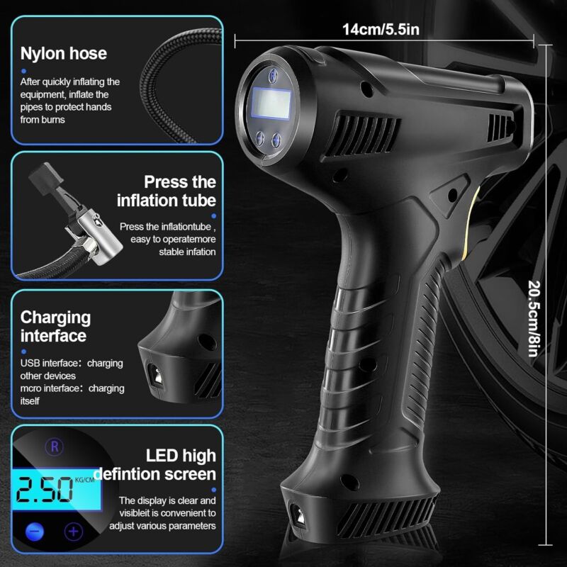 UK Car Tyre Inflator Cordless Digital Touch Air Compressor Pump USB Rechargeable