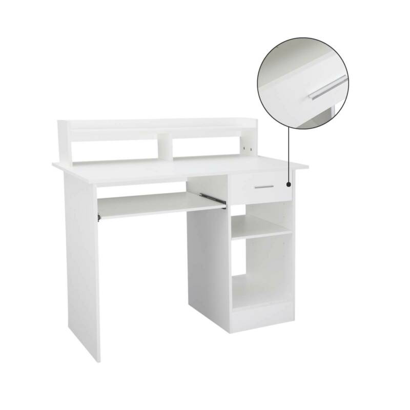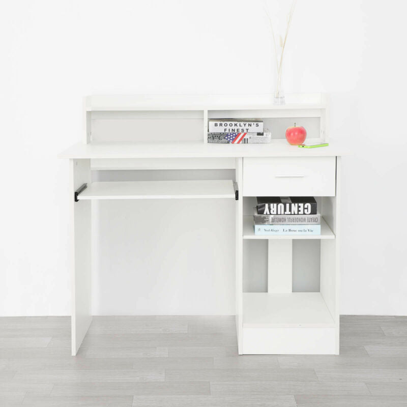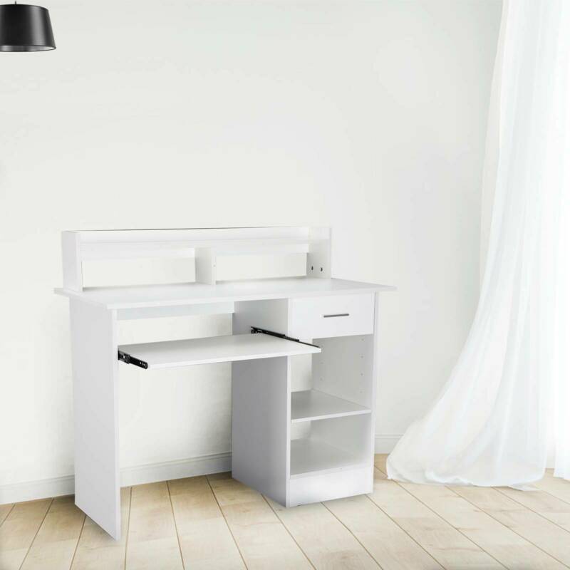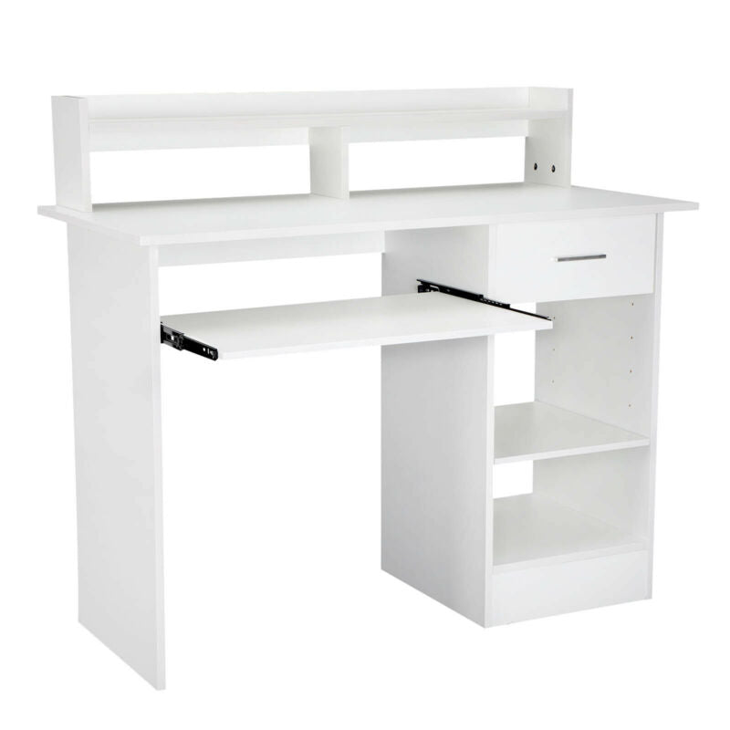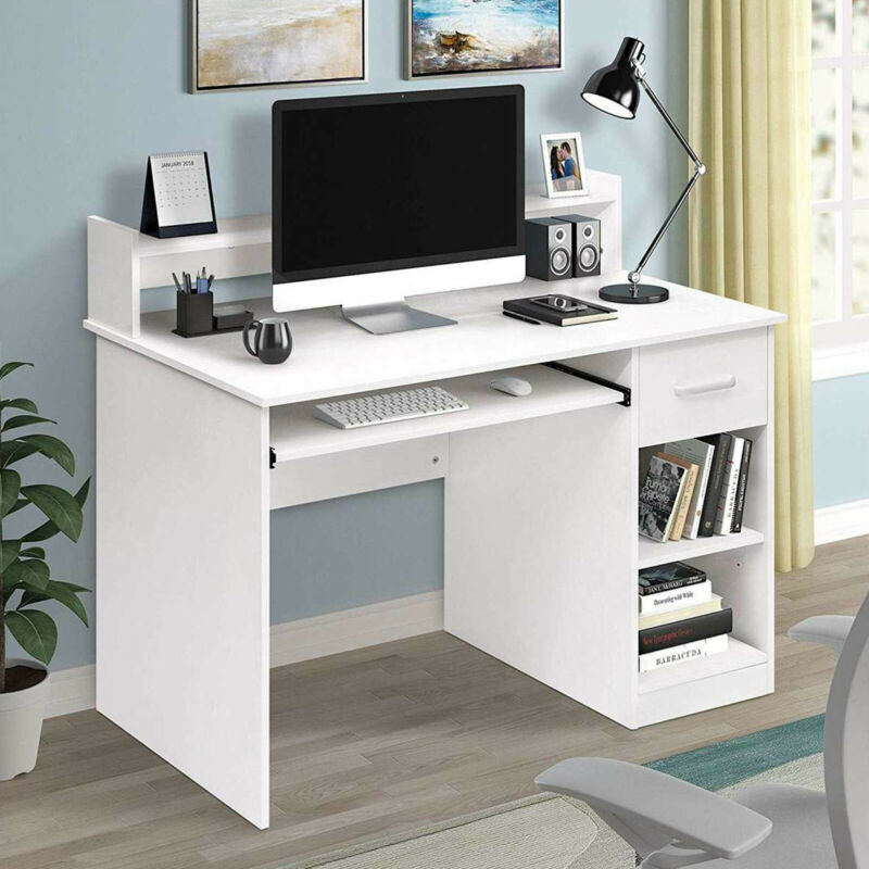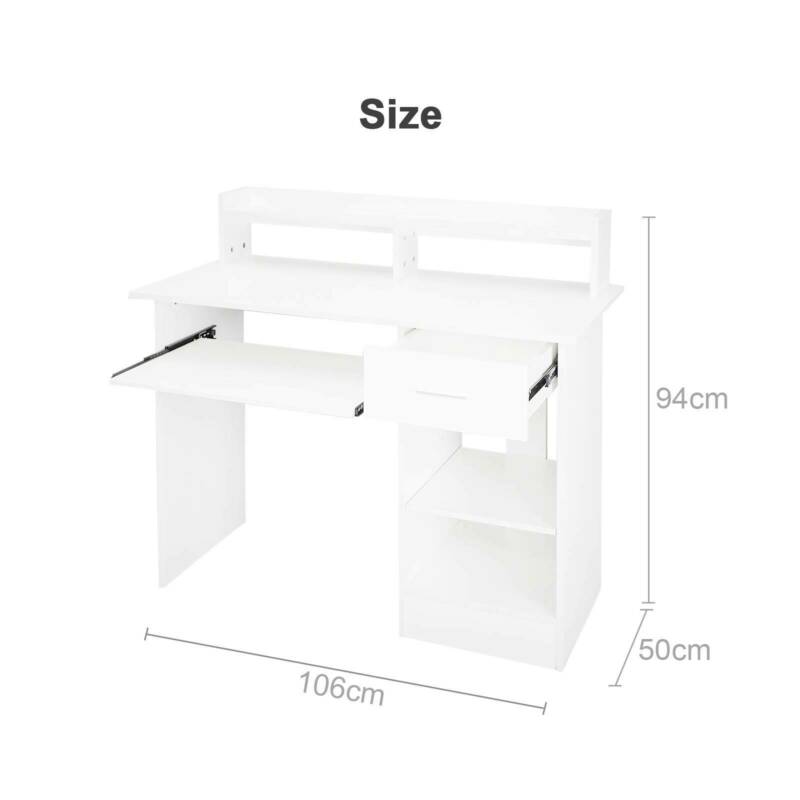 UK Computer Desk with Drawers Storage Shelf Keyboard Tray Laptop Table White