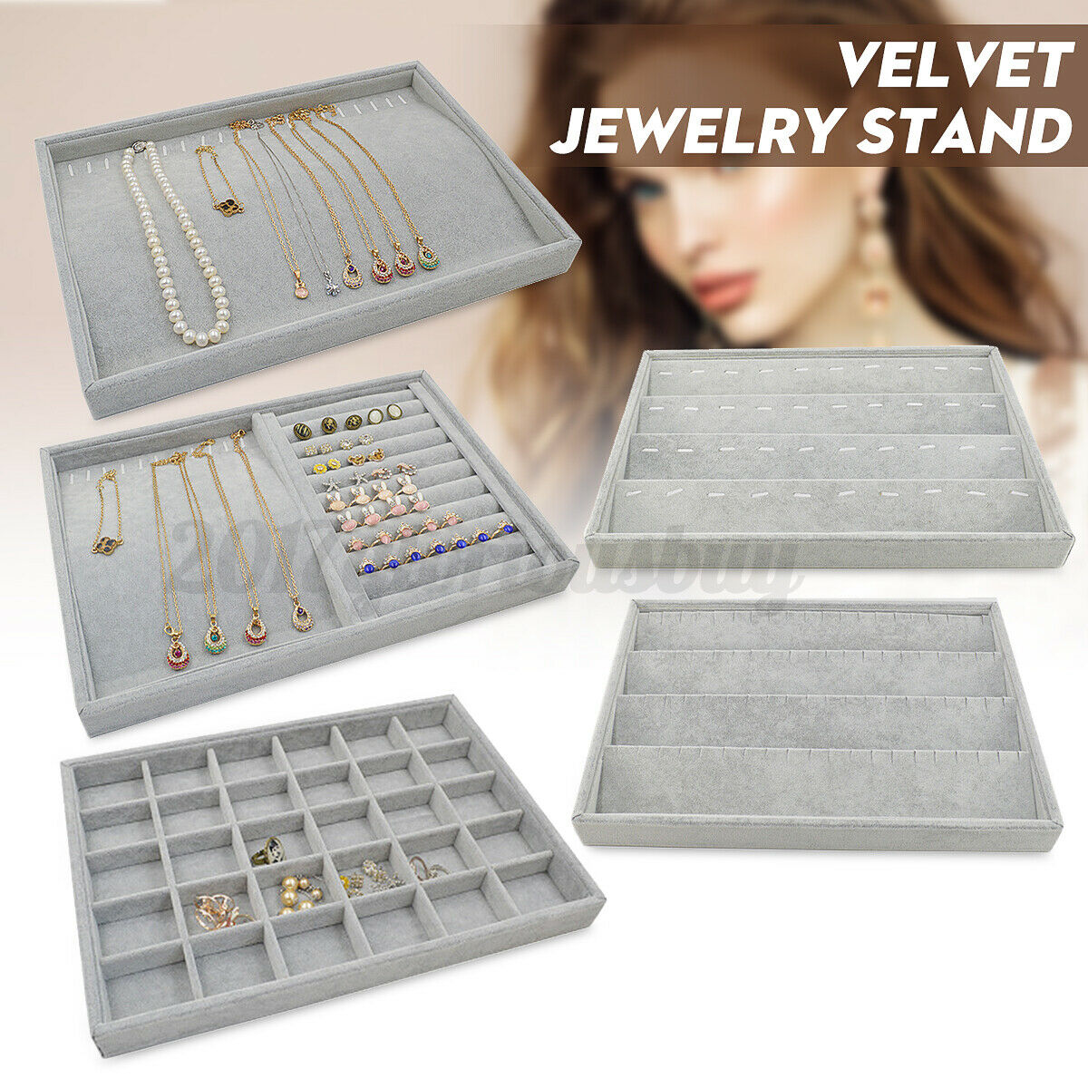 UK Velvet Jewelry Display Organizer Storage Necklaces Earrings Ring