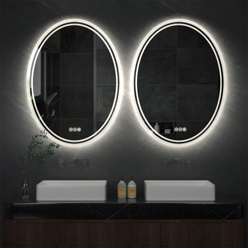 Ultra-thin Oval Bathroom Mirror LED Frameless Frosted Edges Shiny Vanity Mirror