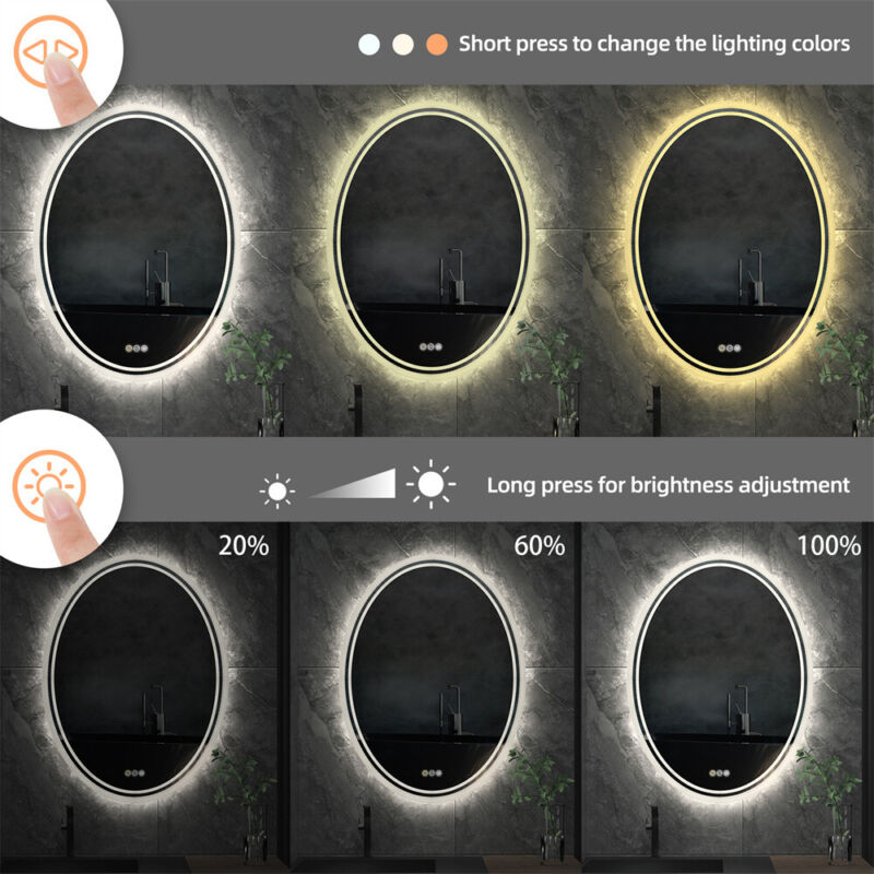 Features Touch Sensor, Bevelled, Wall-mounted, Anti-Fog, Fogless, Backlit, LED Lighted, Heated, Shower