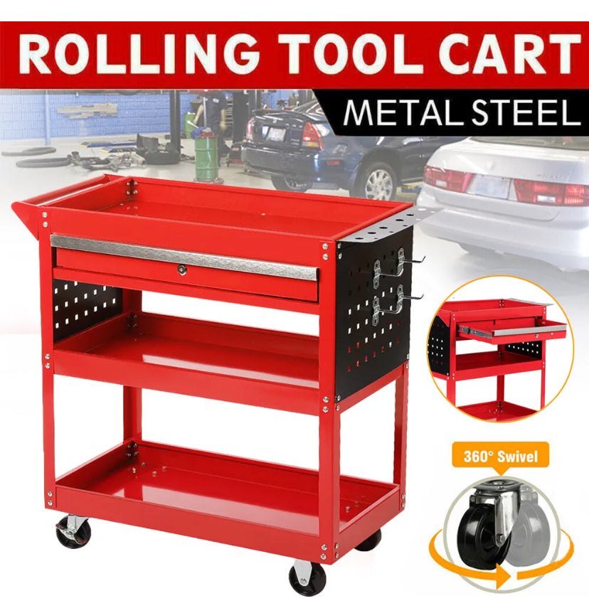 Upgraded Tool Storage Heavy Duty Garage Trolley Workshop 3 Tier Wheel Cart Shelf