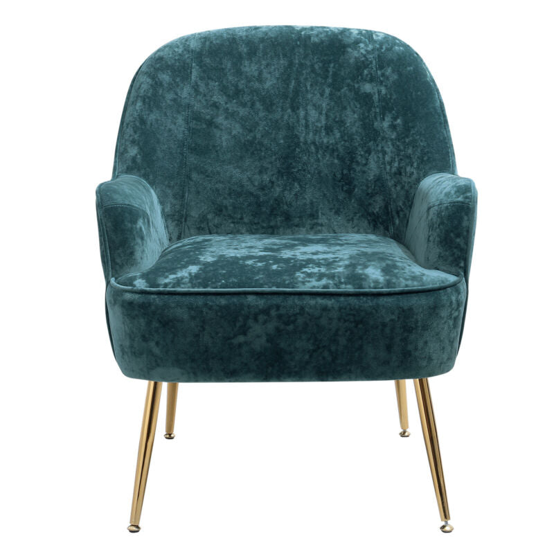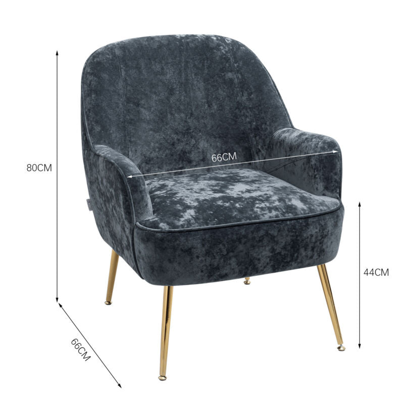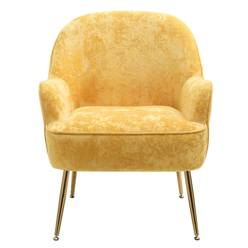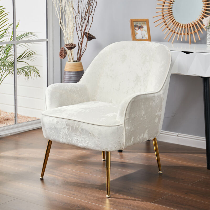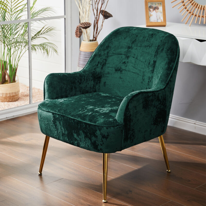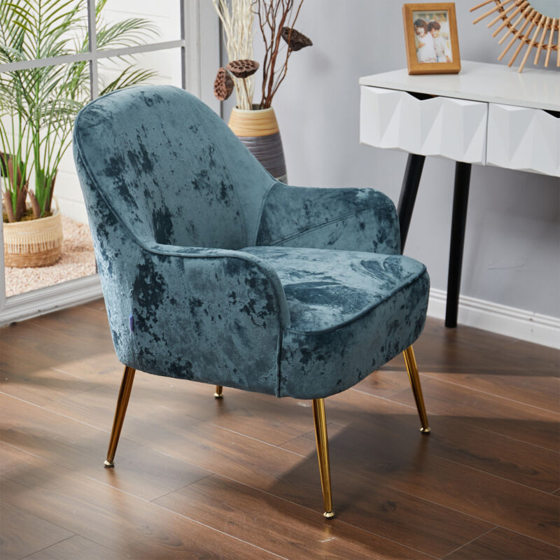 Upholstered Armchair Nordic Crushed Velvet Single Sofa Chair Golden Metal Leg