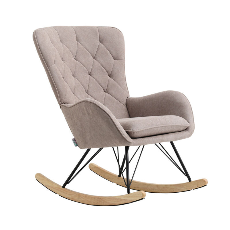 Upholstered Fabric Rocking Rocker Armchair Lounge Tufted Button Chair Rest Sofa