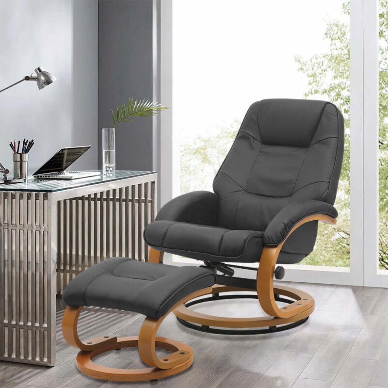 Upholstered Faux Leather Armchair Recliner Chair with Footstool Wooden Base Sofa