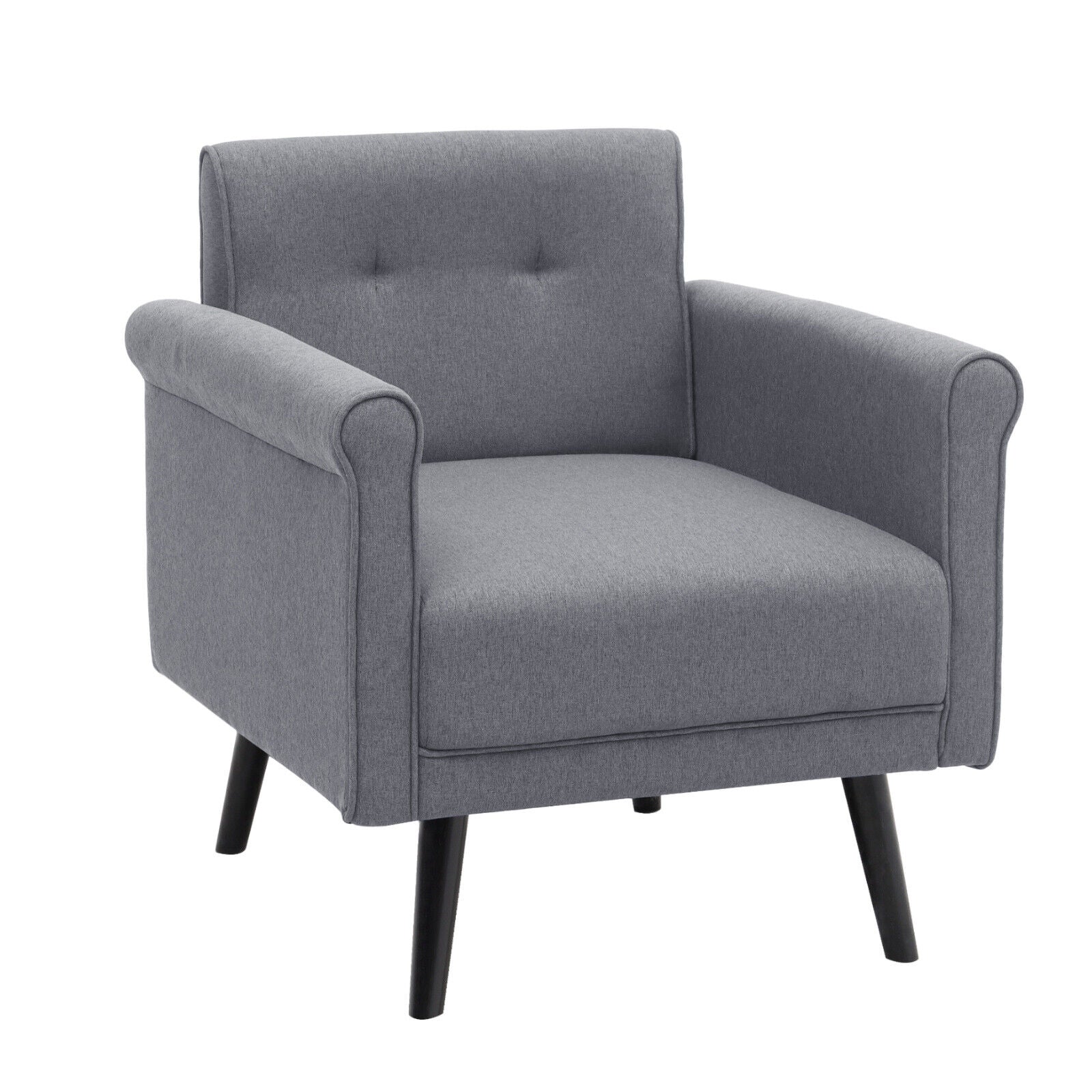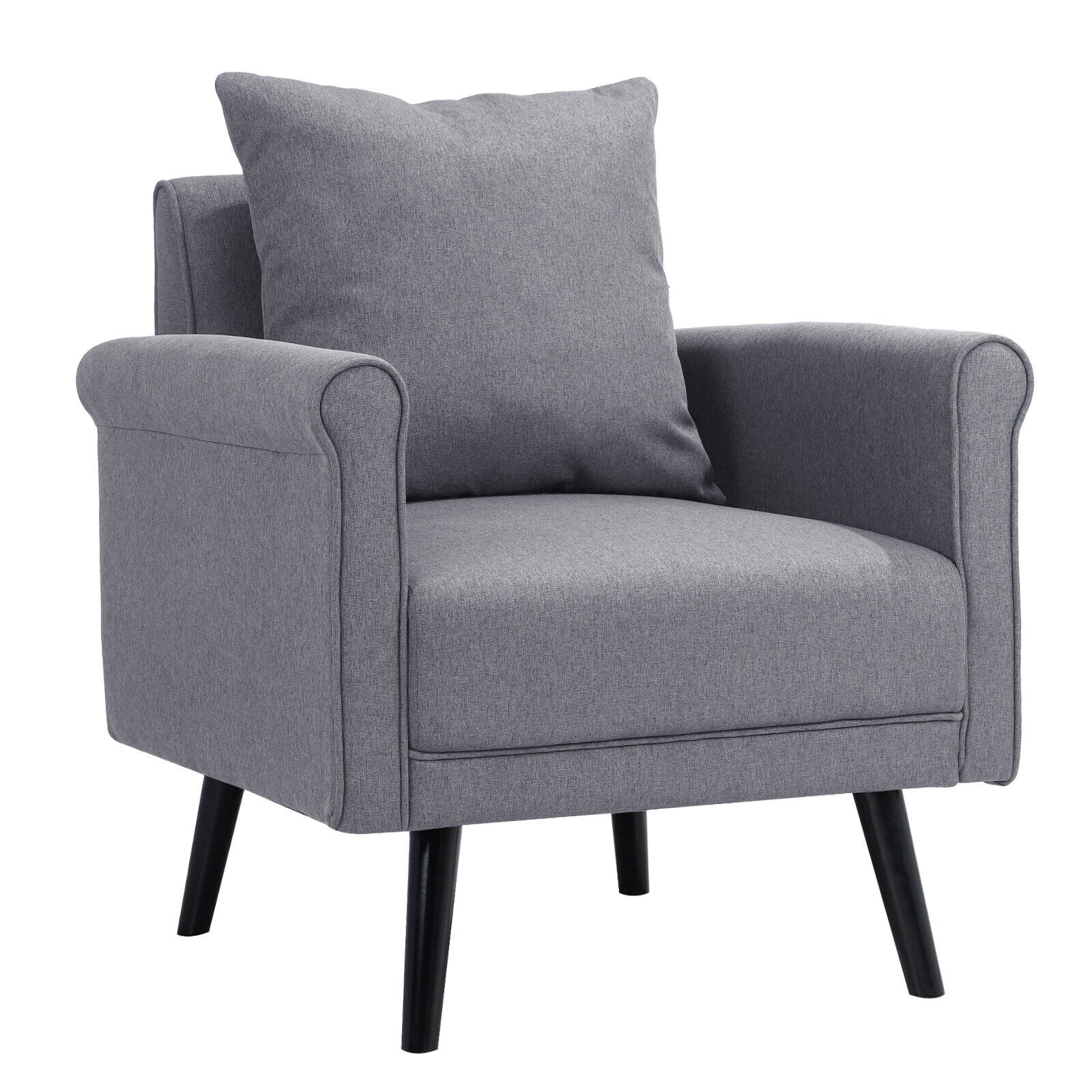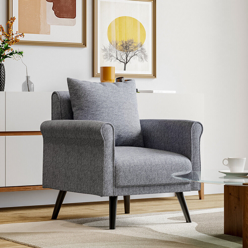 Upholstered Linen Fabric High Back Armchair Single Sofa Wing Chair Lounge+Pillow