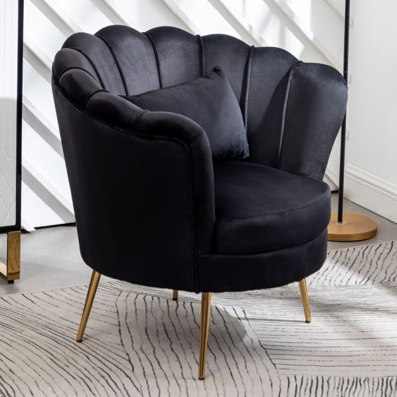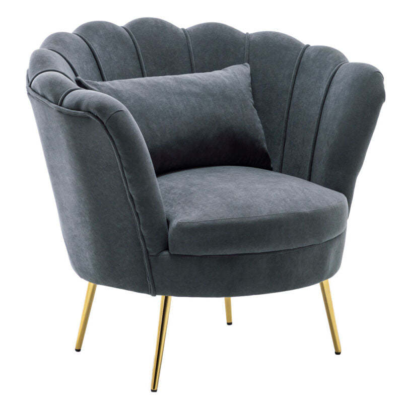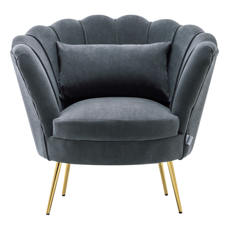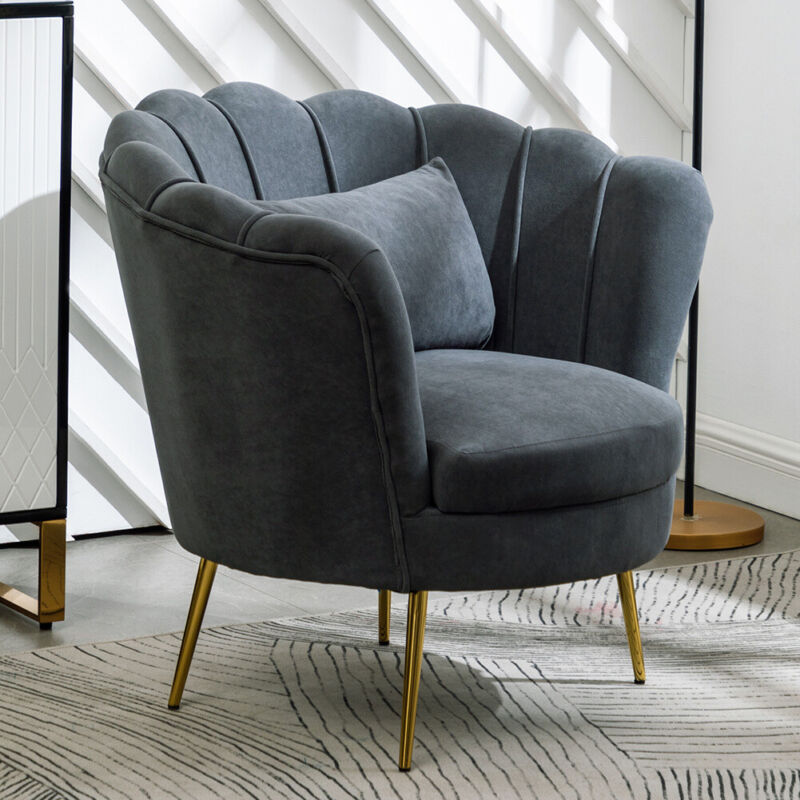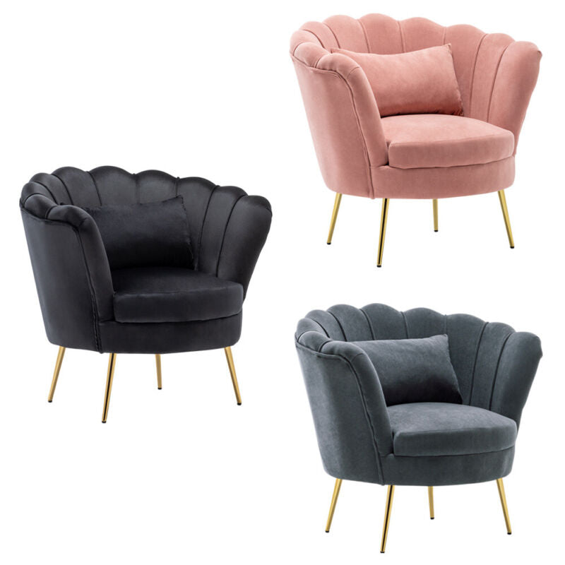 Upholstered Matte Velvet Armchair Lounge Scalloped Oyster Lotus Lounge Tub Chair