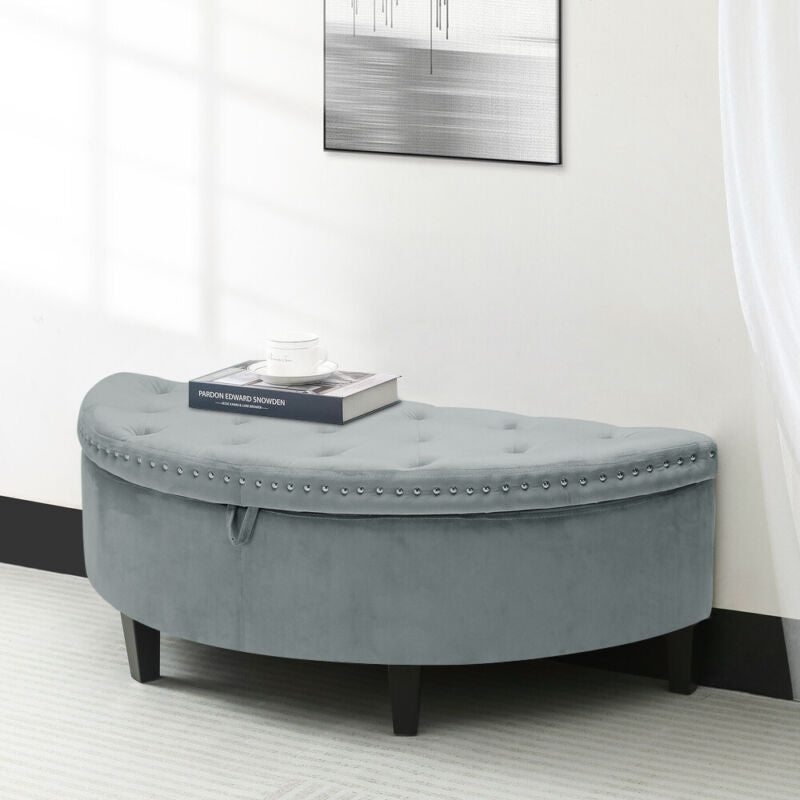 Upholstered Ottoman Living Room Semicircle Storage Stool Bed End Bench Footrest