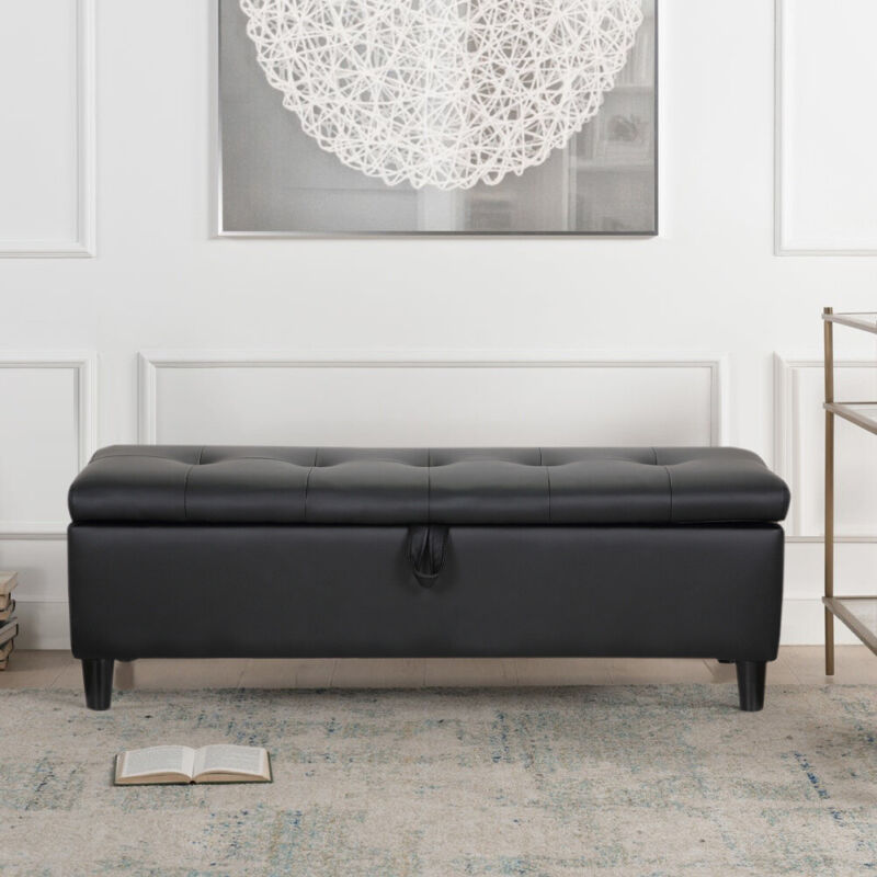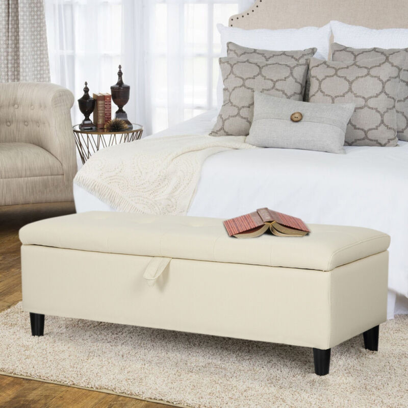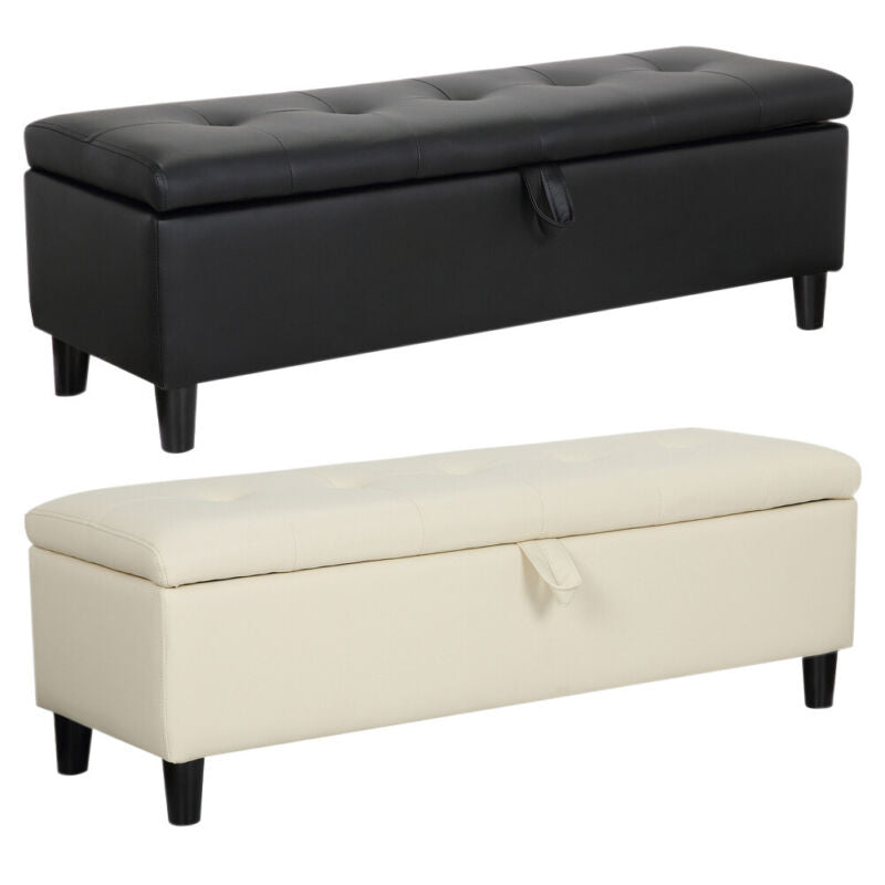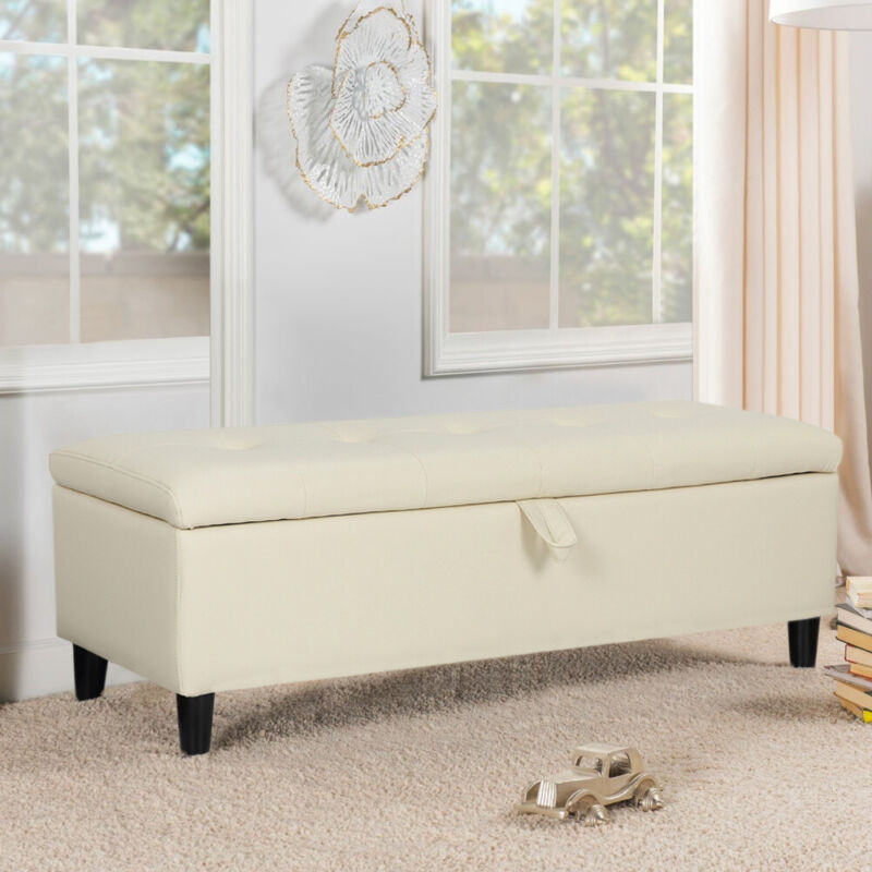 Upholstered Ottoman Stool Bench Chair Footrest Toy Storage Box Chest Window Seat