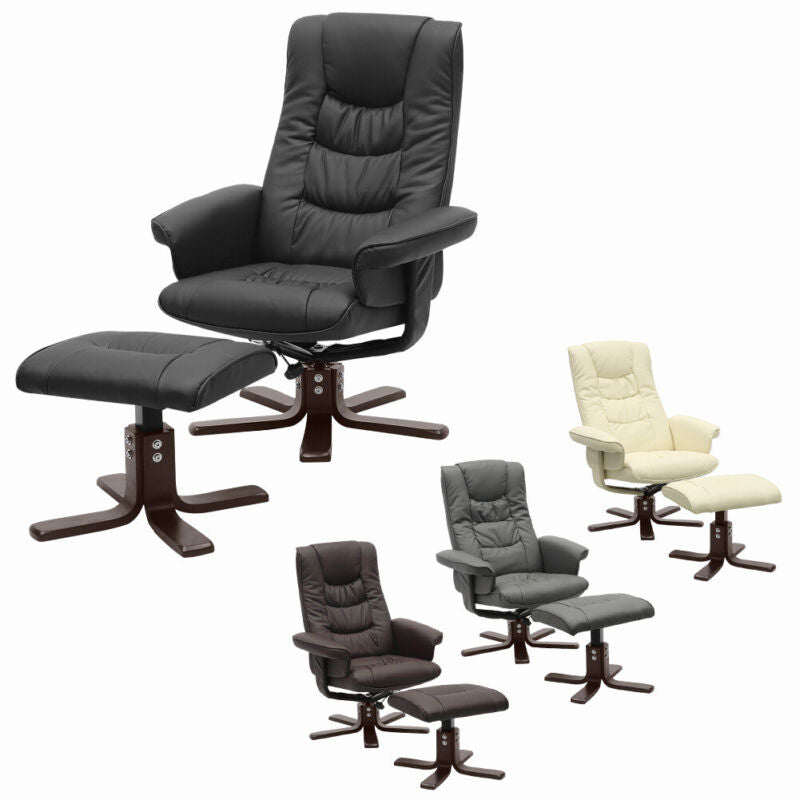 Upholstered Recliner Swivel Armchair Single Sofa w/ Stool Office Chair Wood Base