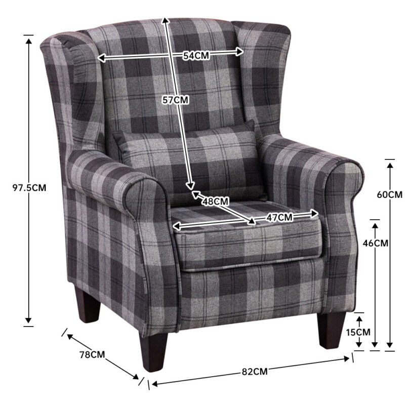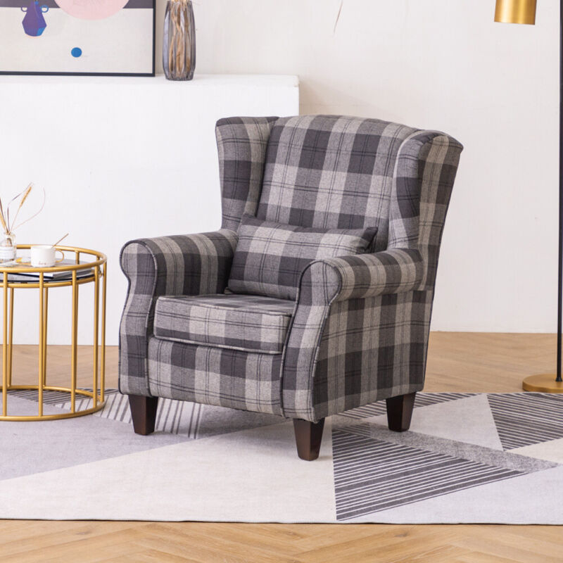 Upholstered Tartan Check Fabric High Back Wing Back Chair Armchair Fireside Sofa