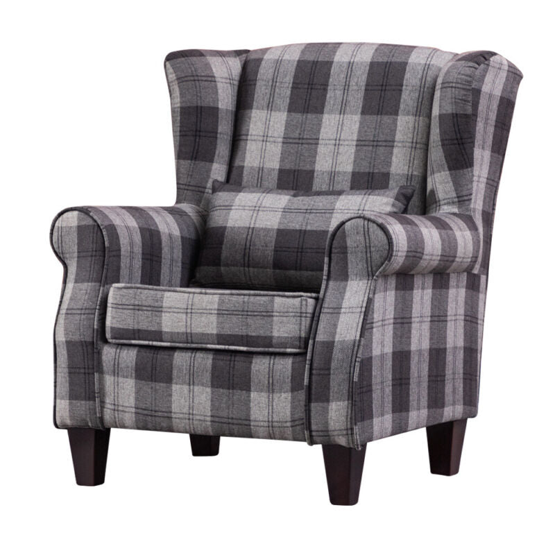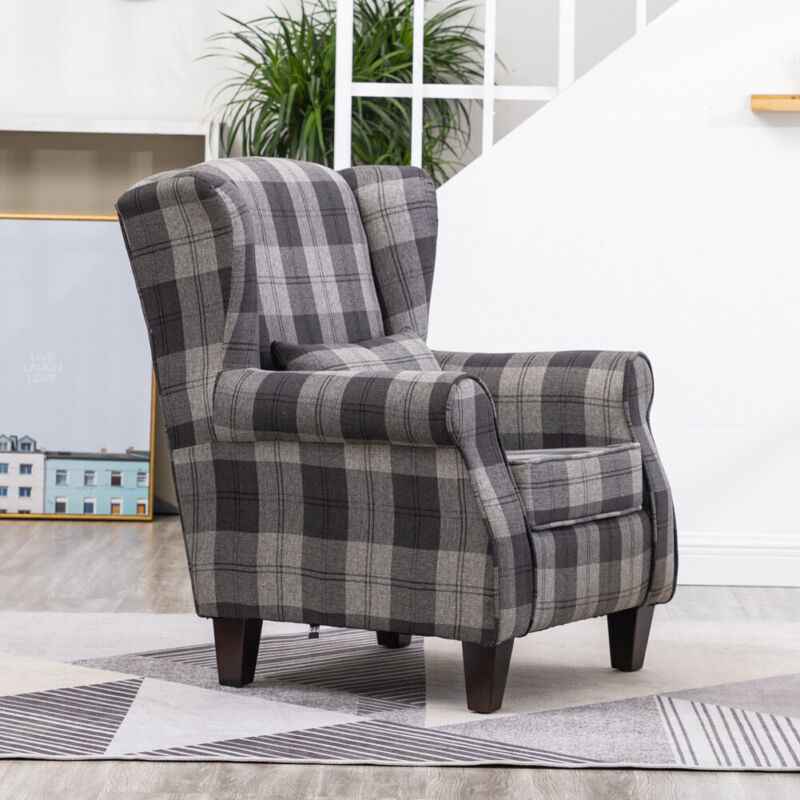 Upholstered Tartan High Back Armchair Wingback Accent Chair Sofa Fabric Lounge