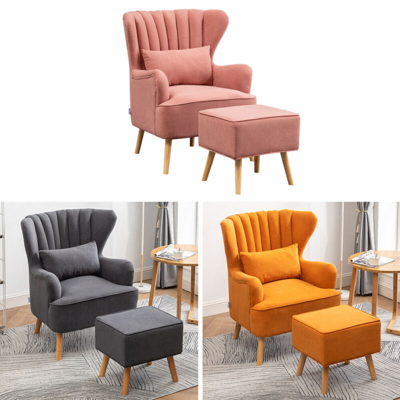 Upholstered Velvet Accent Armchair Queen Wing Back Single Sofa Chair with Stool