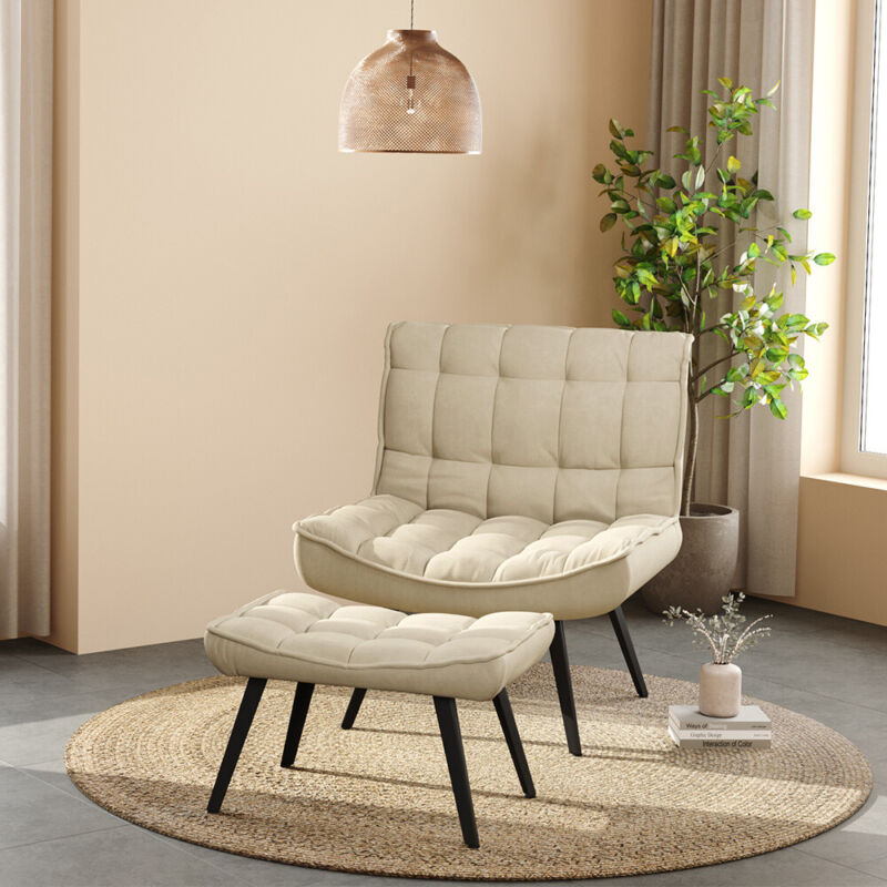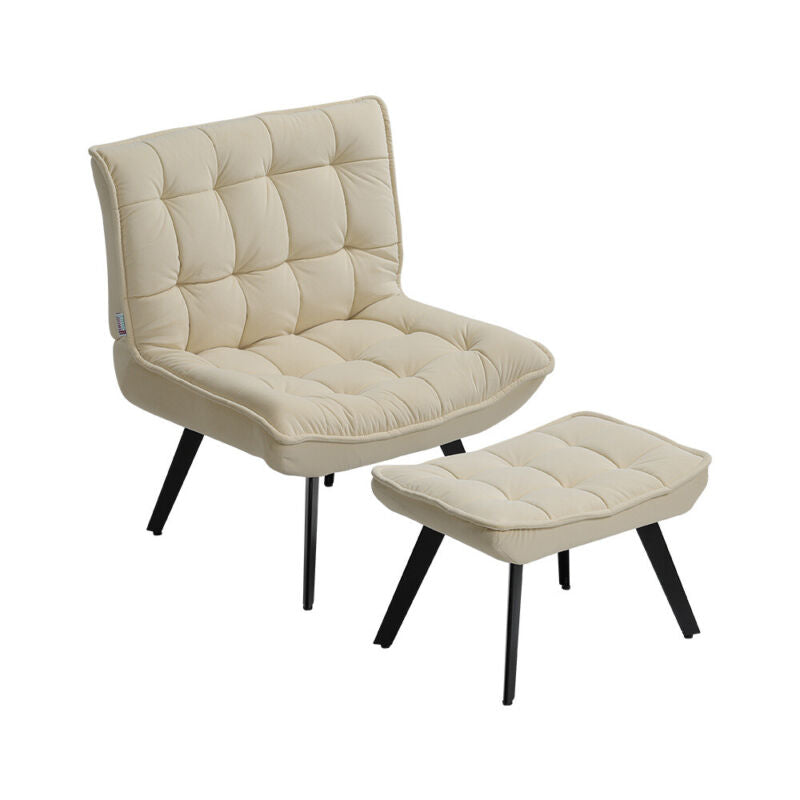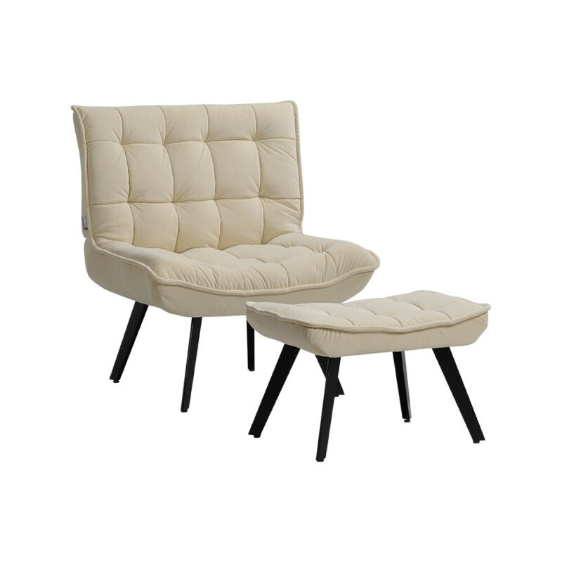 Upholstered Velvet Armchair Deep Button Extra Soft Lounge Sofa with Stool Rest