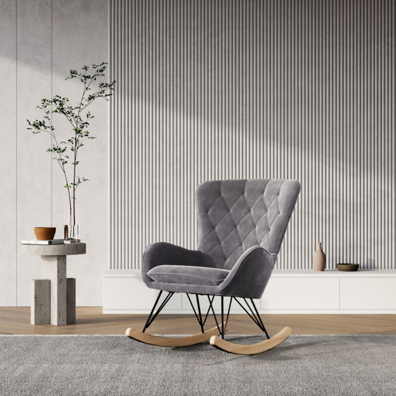 Upholstered Velvet Armchair Rocking Swing Lounge TV Fireside Chair Sofa Relaxing