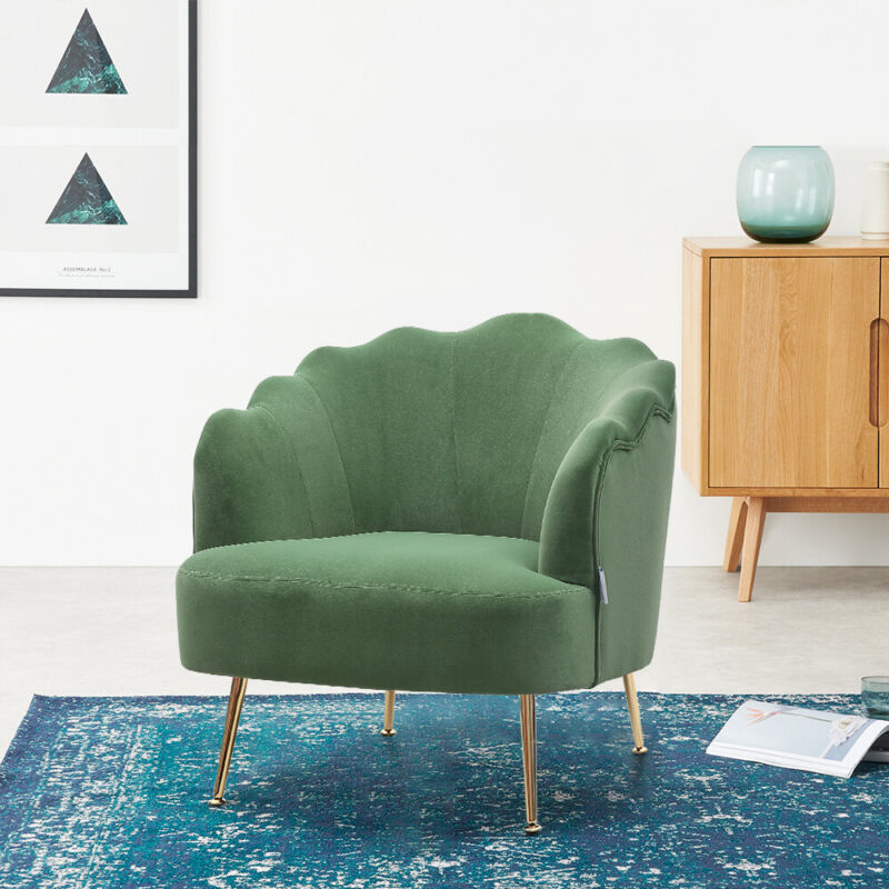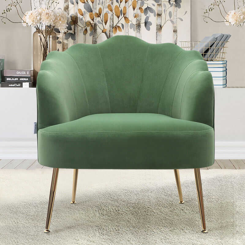 Upholstered Velvet Fabric Scalloped Oyster Shell Armchair Fireside Sofa Lounge