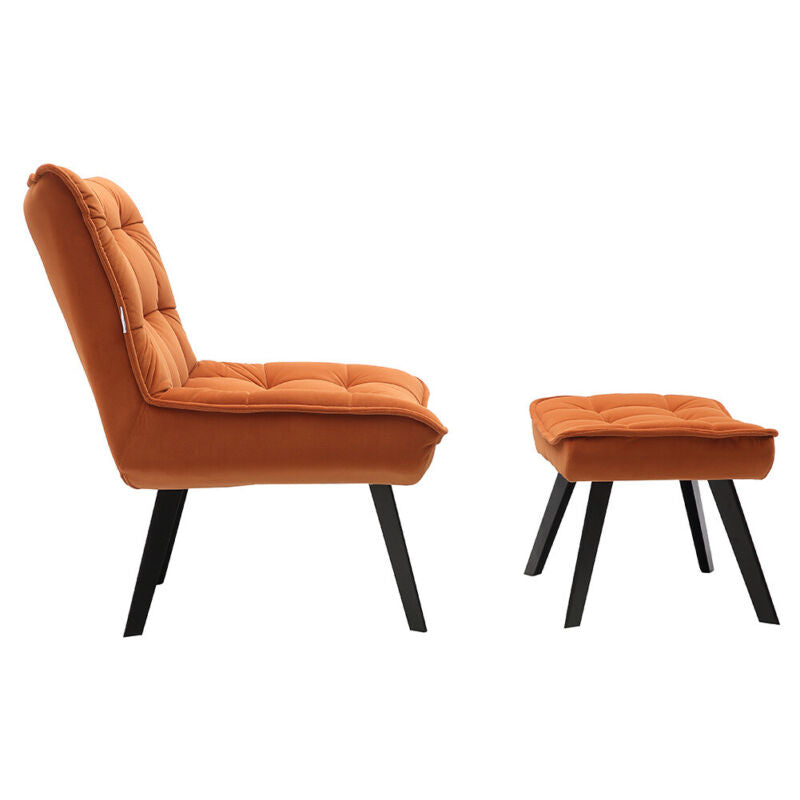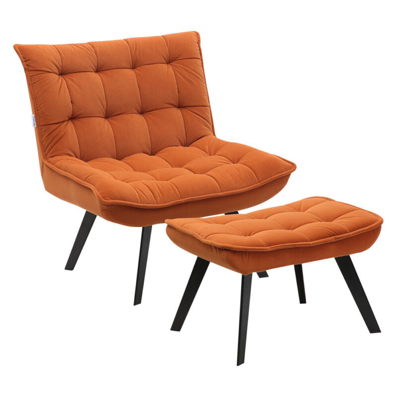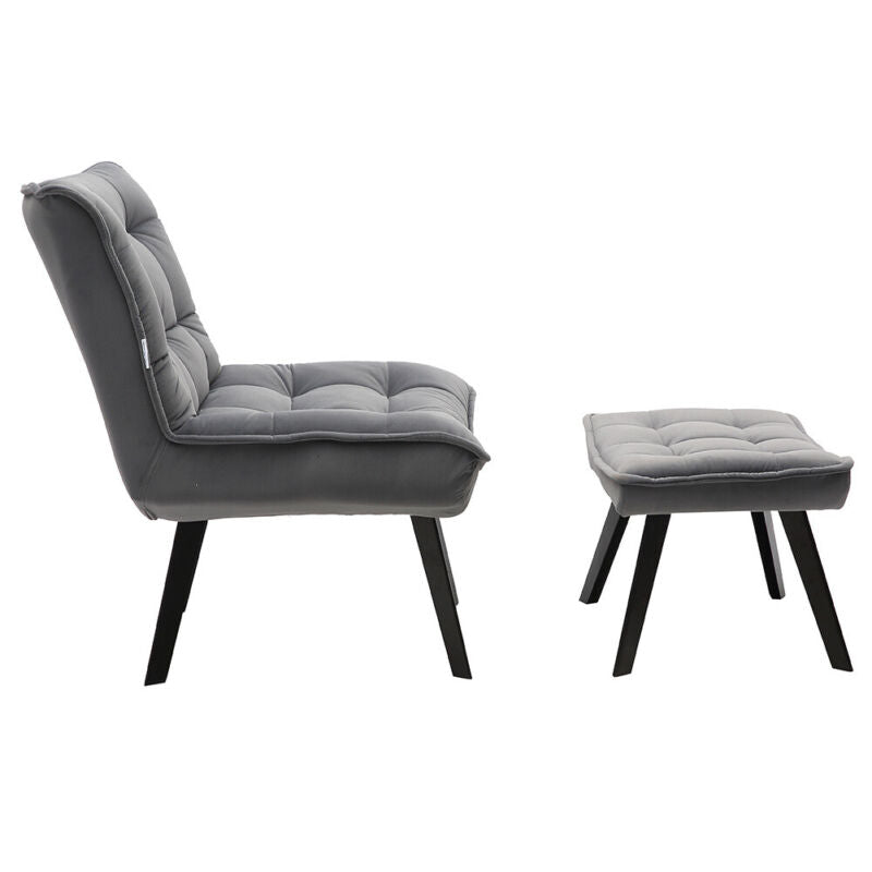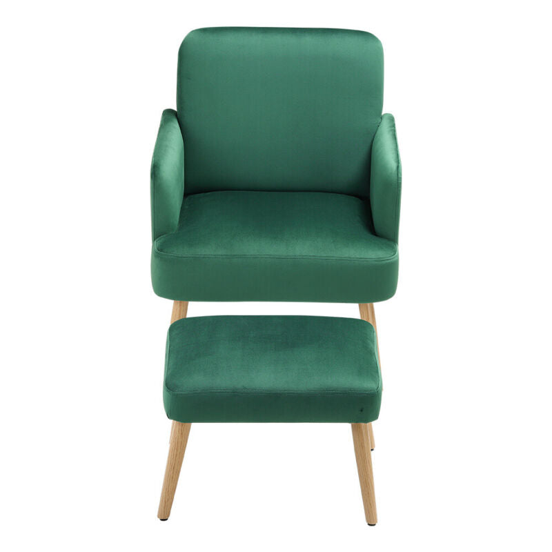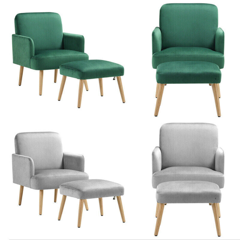 Upholstered Velvet Tufted Accent Chair Tub Armchair Lounge Sleep Sofa With Stool