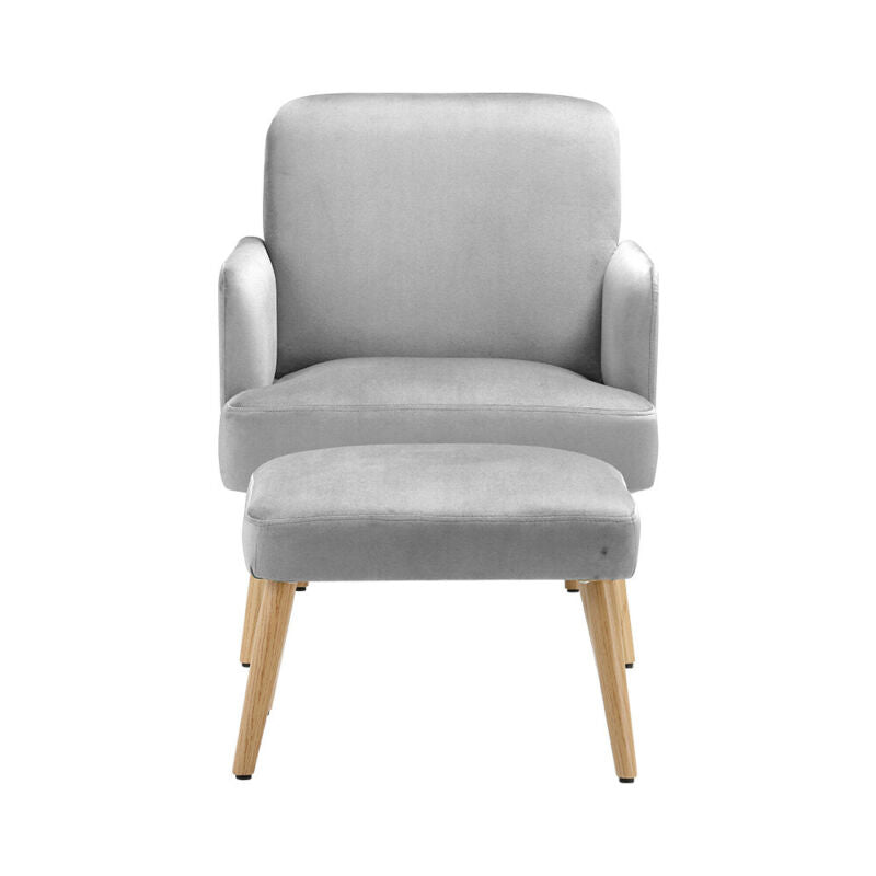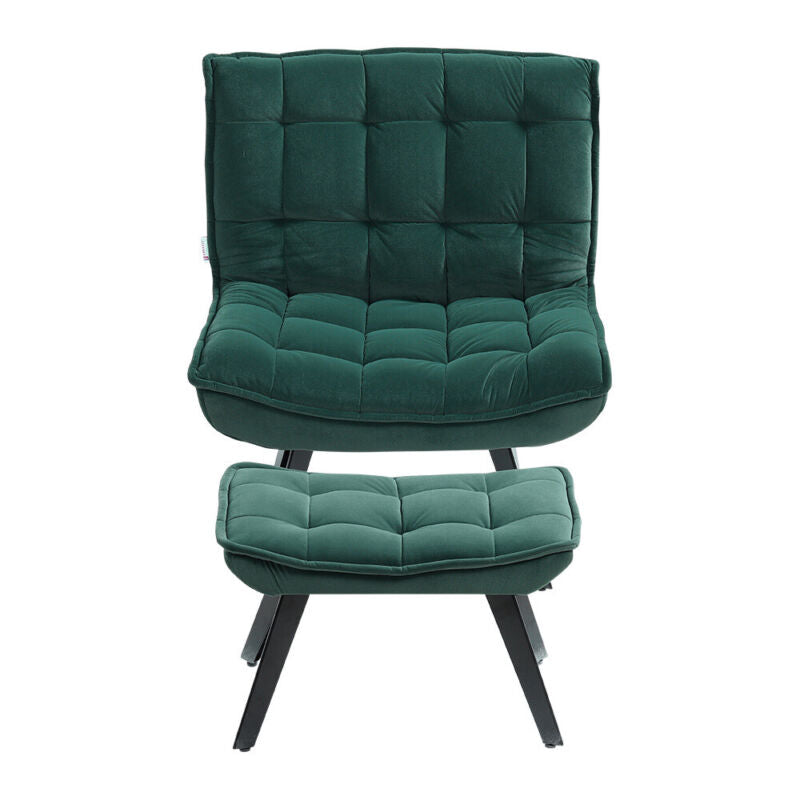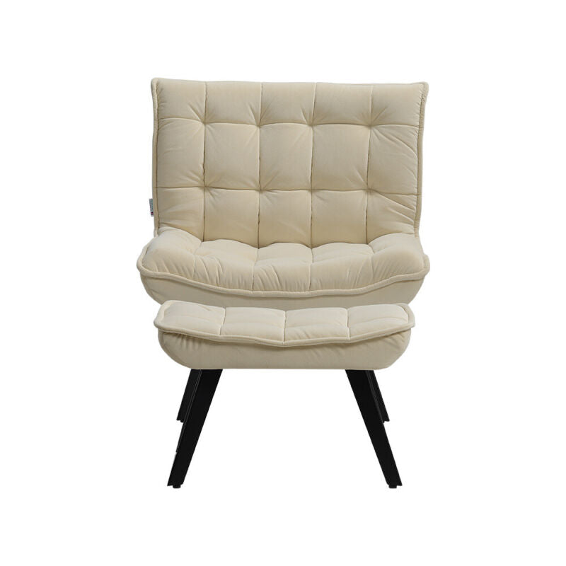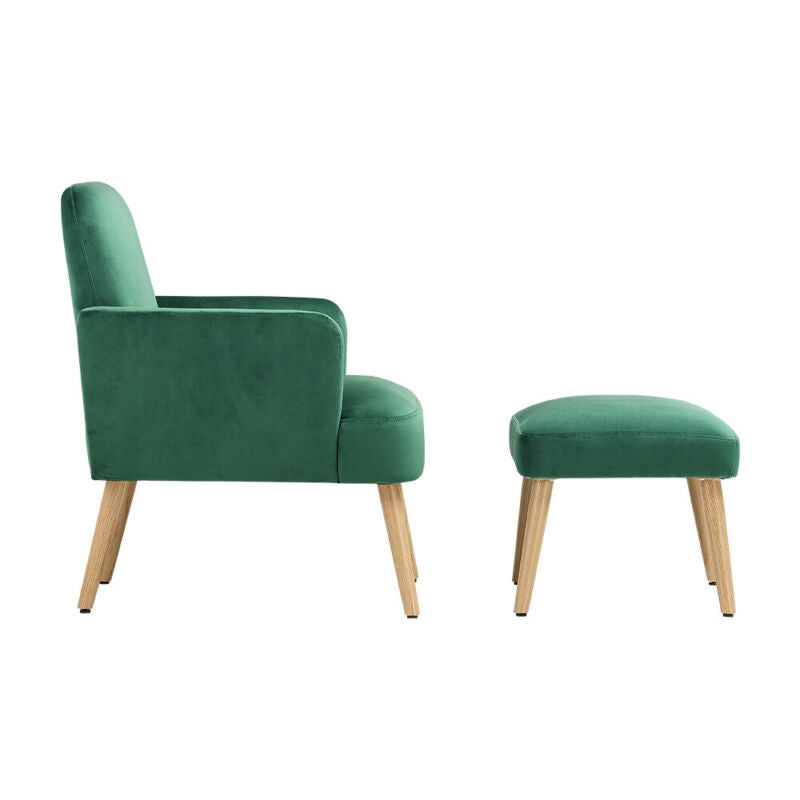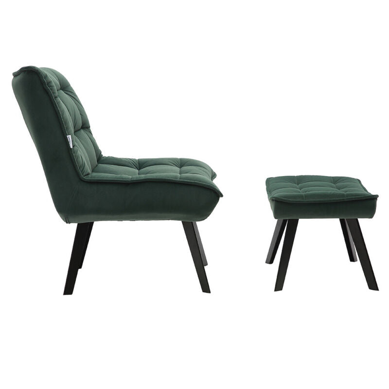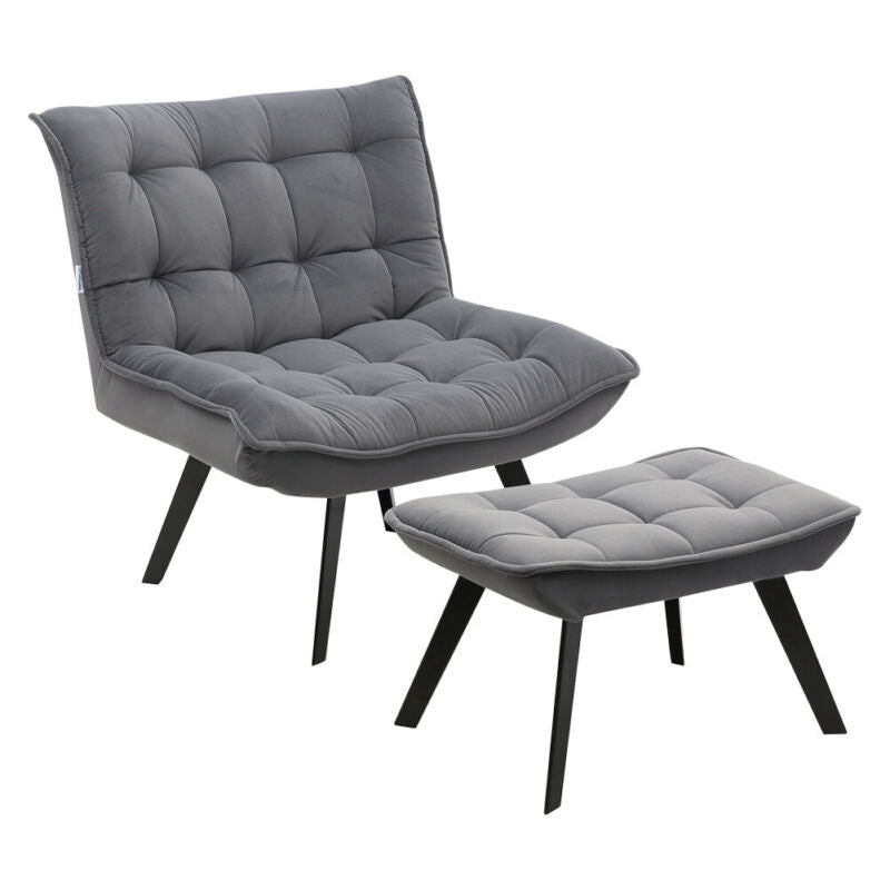 Upholstered Velvet Tufted Accent Chair Tub Armchair Lounge Sleep Sofa With Stool