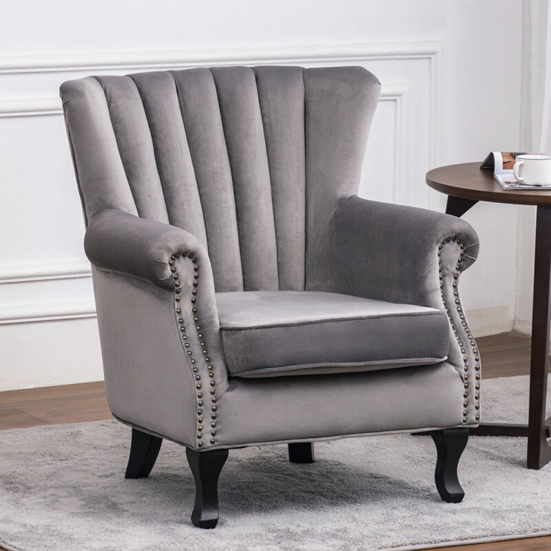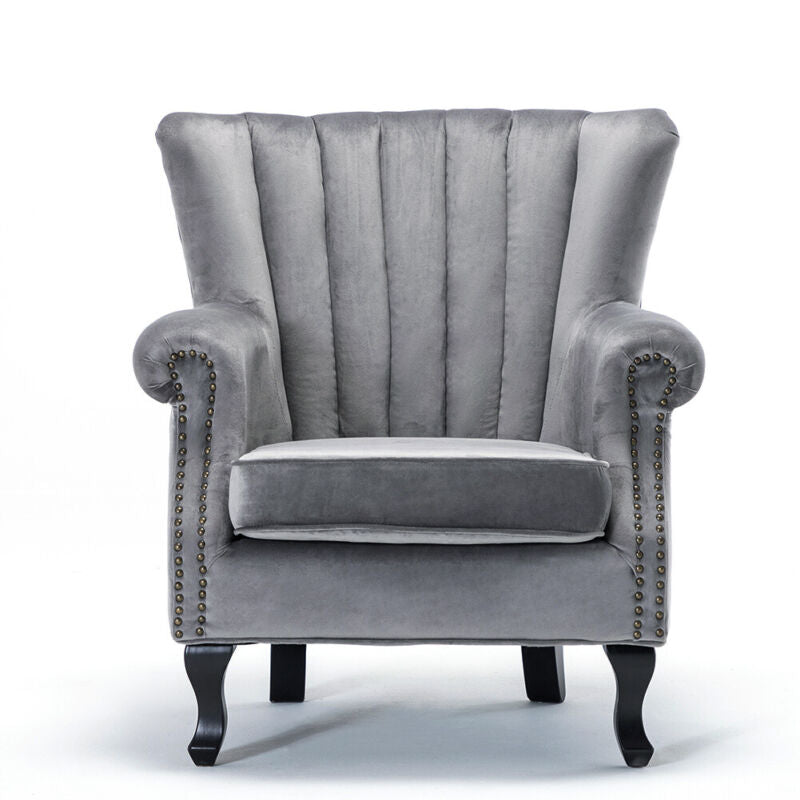 Upholstered Wing Back Oyster Retro Armchair Queen Anne Chair Lounge Sofa Velvet