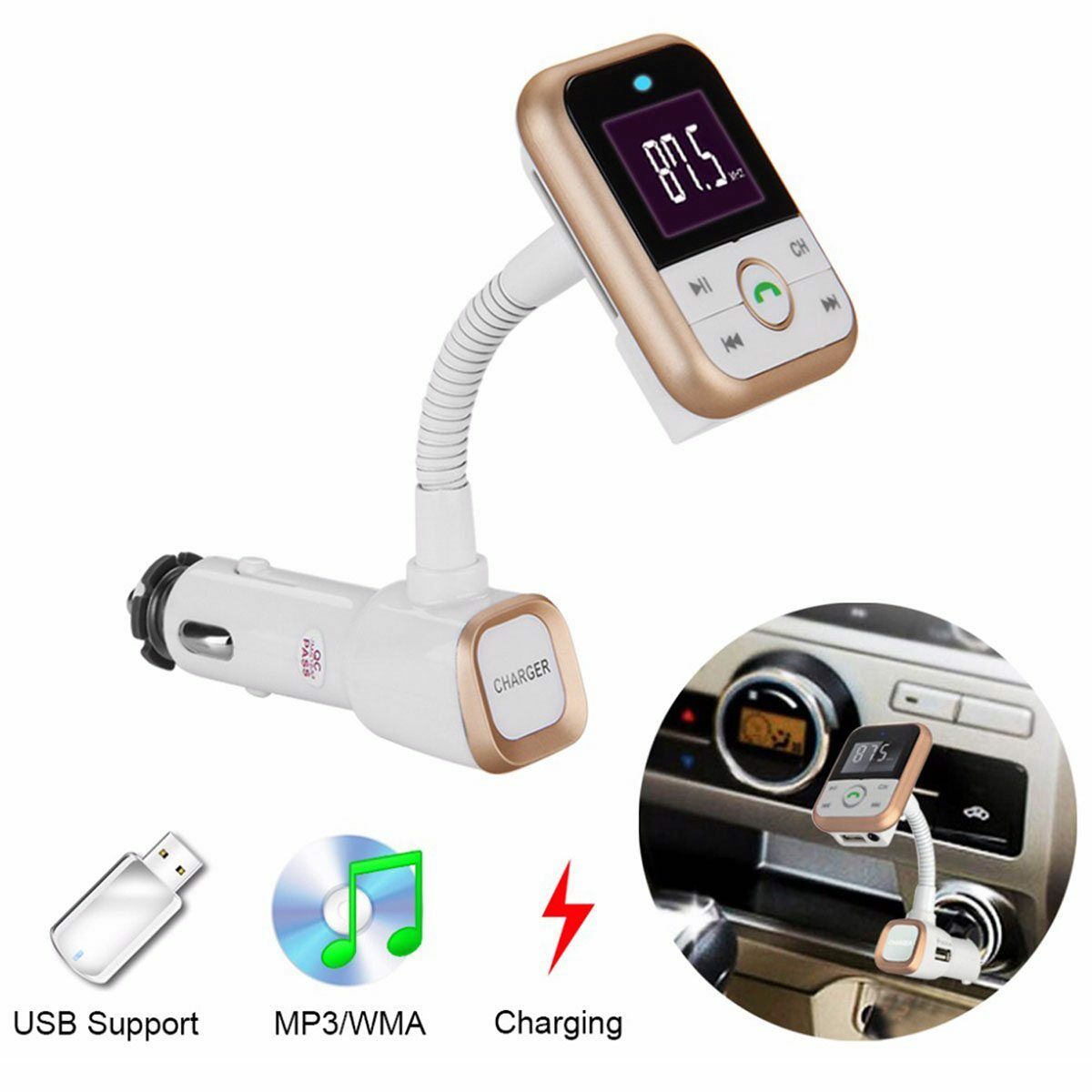 USB Car Bluetooth FM Transmitter Wireless Radio Adapter Charger w/ MP3 Player KT